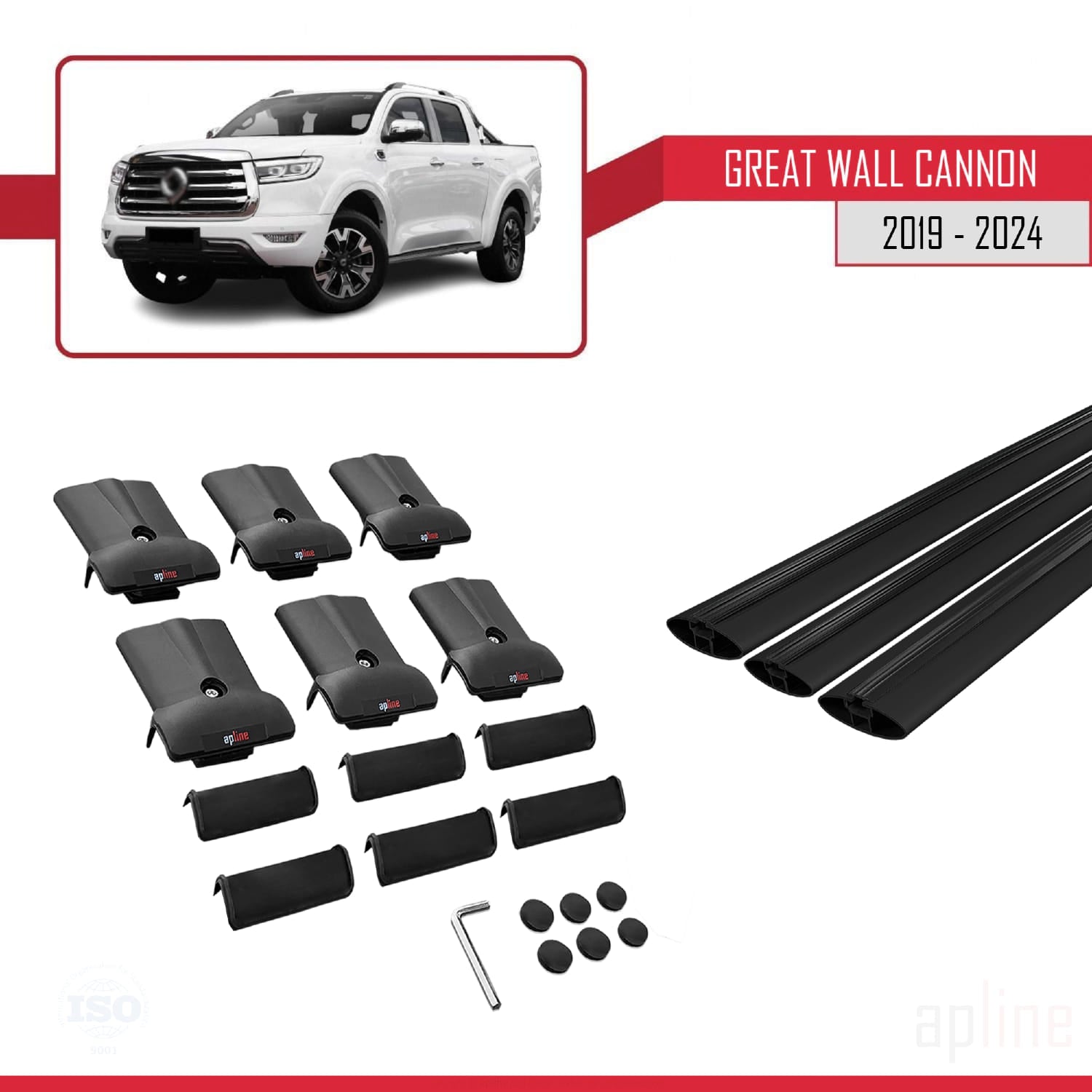 Compatible with Great Wall Cannon 2019-2025 FLY Model Car Roof Rack Cross Bar Black Aluminium 3 Bars