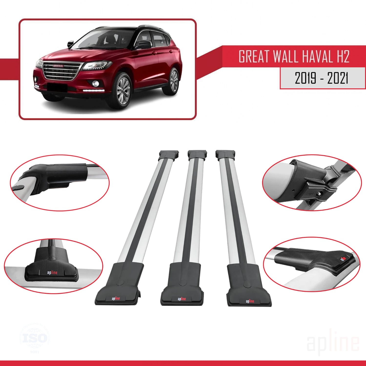 Compatible with Great Wall Haval H2 2019-2021 FLY Model Car Roof Rack Cross Bar Grey Aluminium 3 Bars