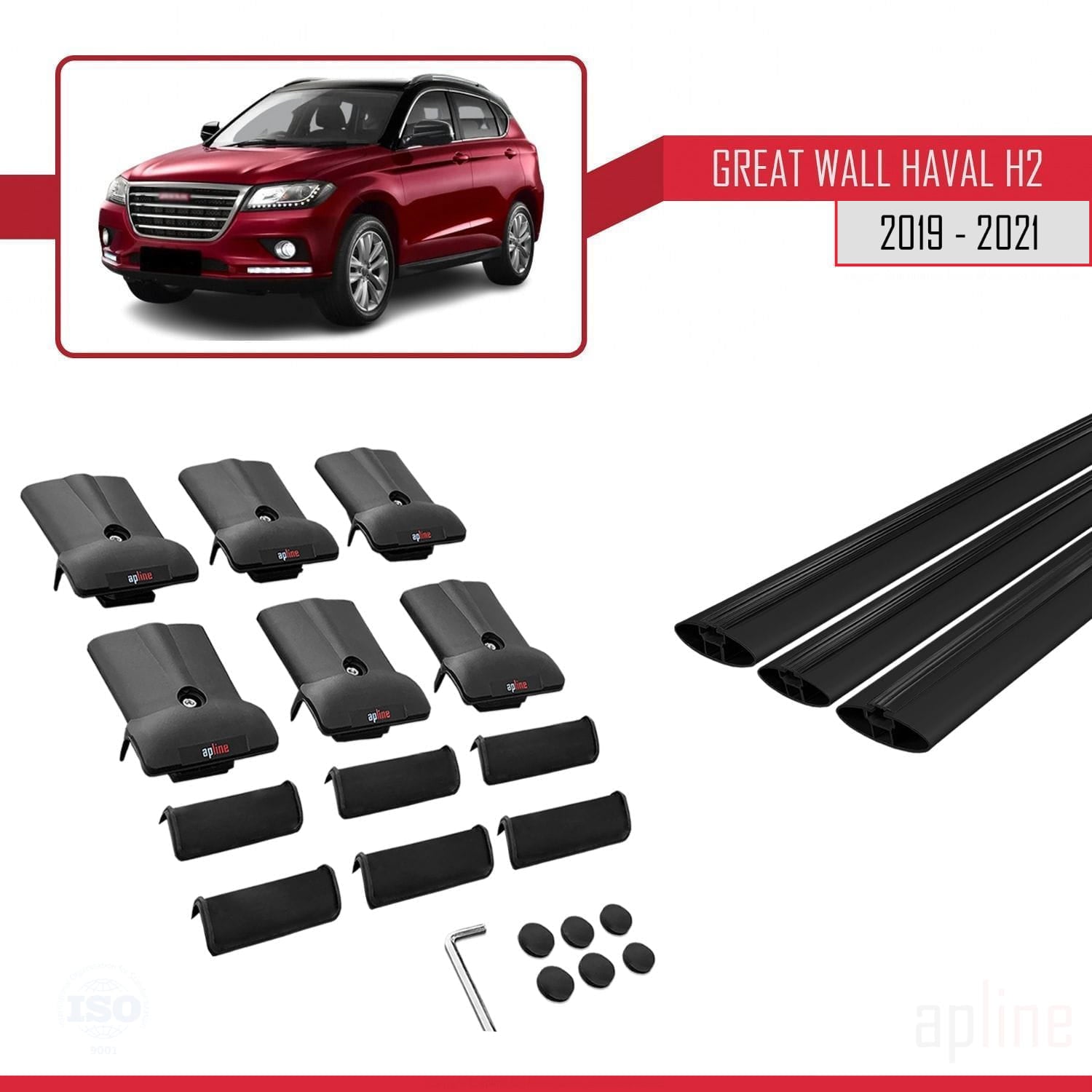 Compatible with Great Wall Haval H2 2019-2021 FLY Model Car Roof Rack Cross Bar Black Aluminium 3 Bars