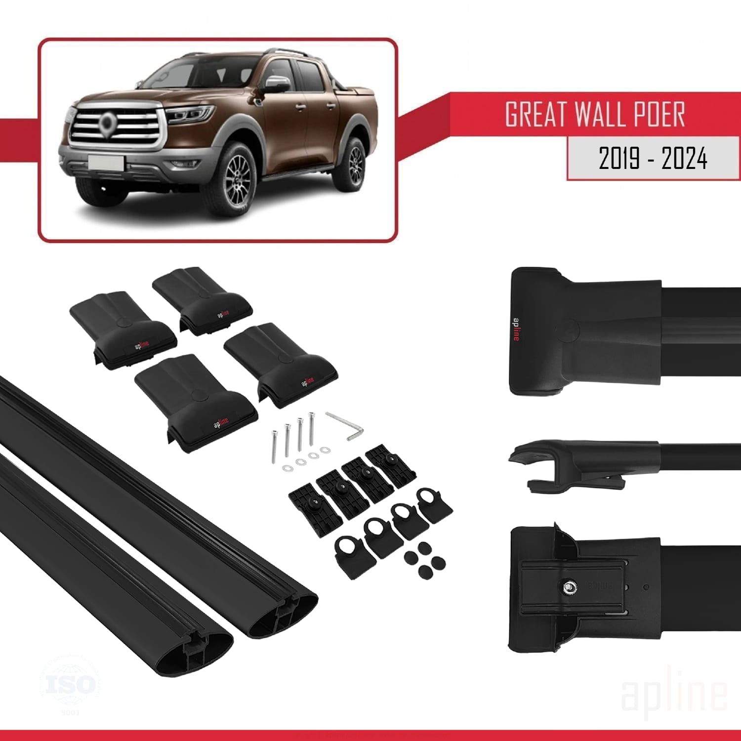 Compatible avec Great Wall Poer 2019-2025 FLY Model Barres de Toit Railing Porte-Bagages de Voiture Noir Aluminium 2 Barres