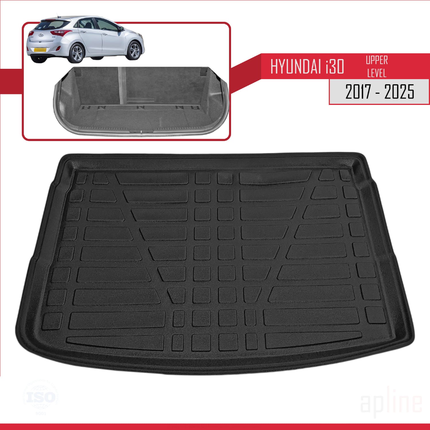 Compatible with Hyundai i30 3 (PD) 2017-2025 Flexible Trunk Mats Upper Position Cargo Liner Black
