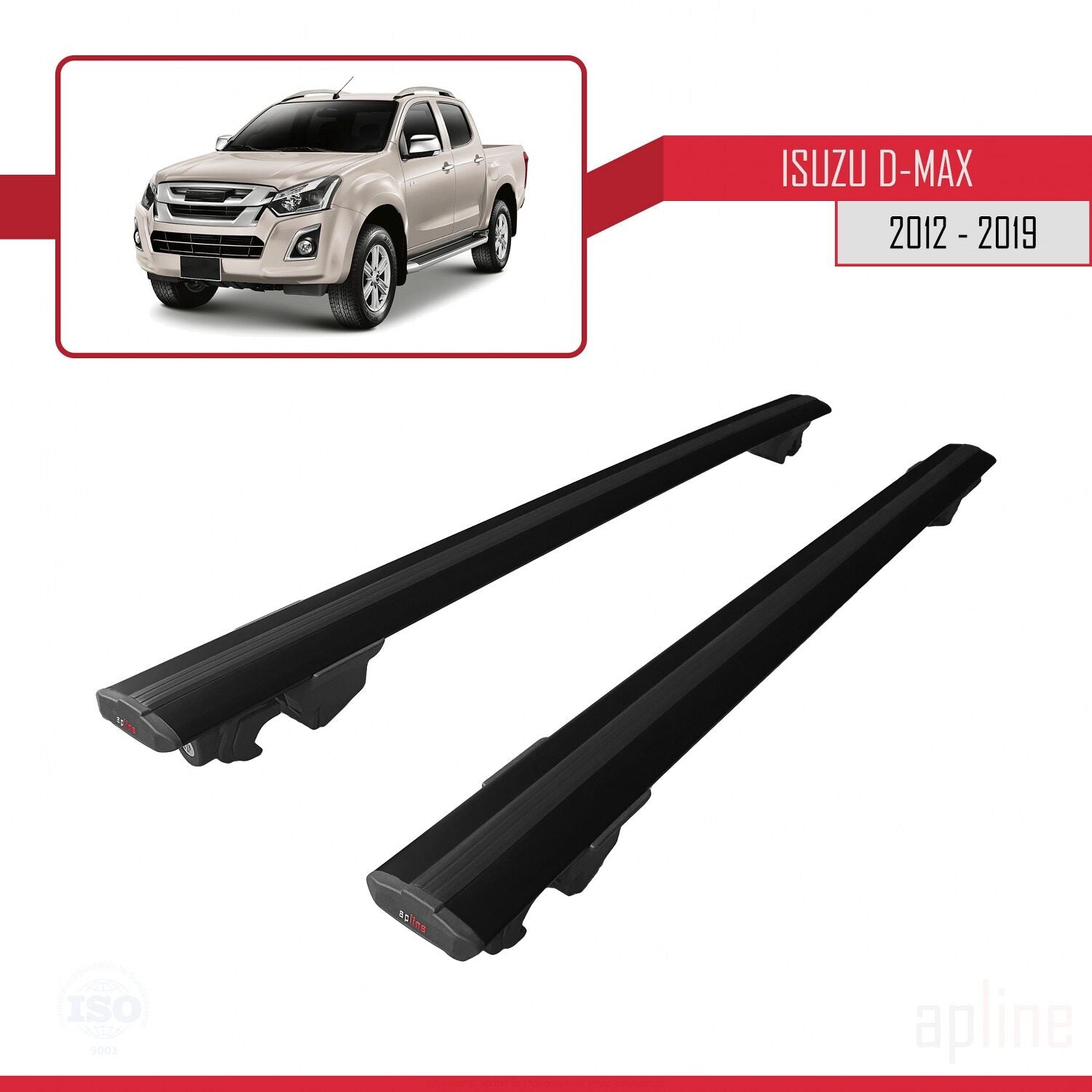 Compatible with Isuzu D-Max 2 (RT50) 2012-2019 HOOK Model Car Roof Rack Cross Bar Black Aluminium 2 Bars