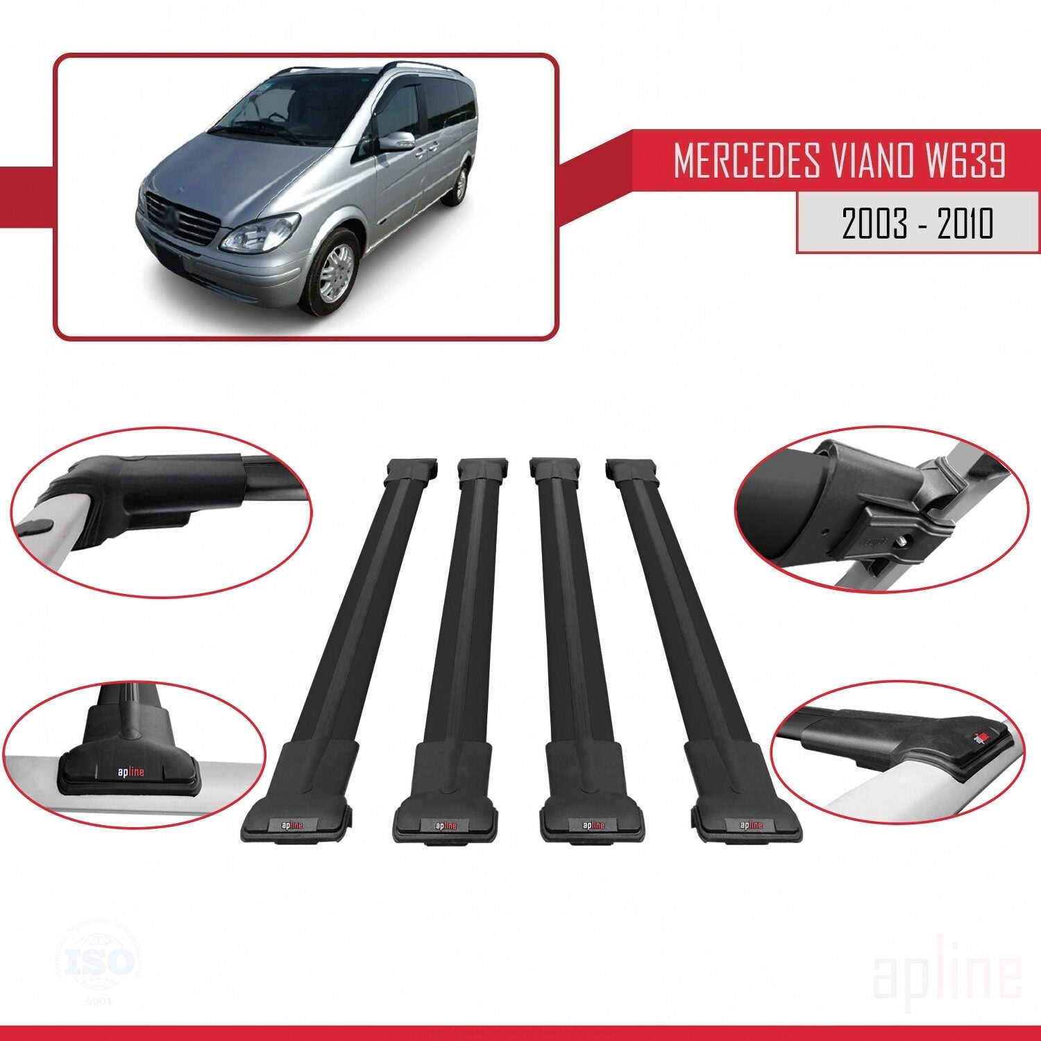 Compatible with Mercedes Viano 2 (W639) Pre-Facelift 2003-2010 FLY Model Car Roof Rack Cross Bar Black Aluminium 4 Bars