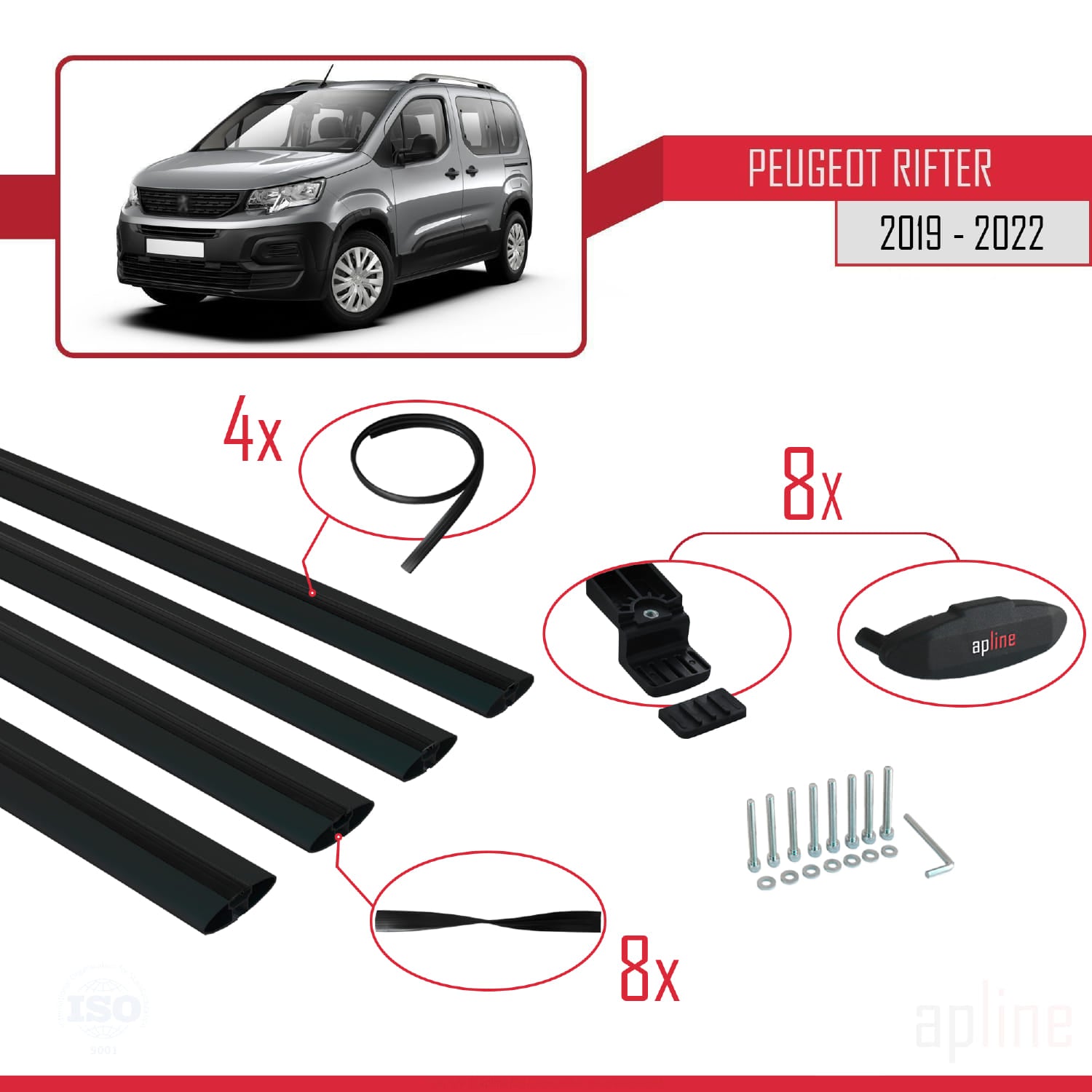 Compatible with Peugeot Rifter 2019-2022 BASIC Model Car Roof Rack Cross Bar Black Aluminium 4 Bars