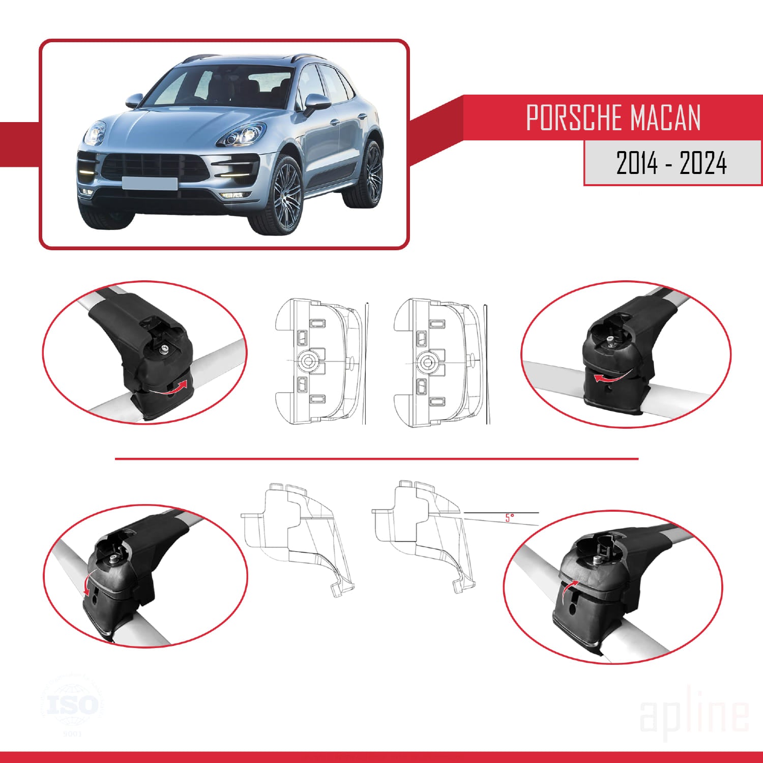 Compatible avec Porsche Macan (95B) 2014-2024 ACE-2 Barres de Toit Railing Porte-Bagages de Voiture Gris Aluminium 2 Barres