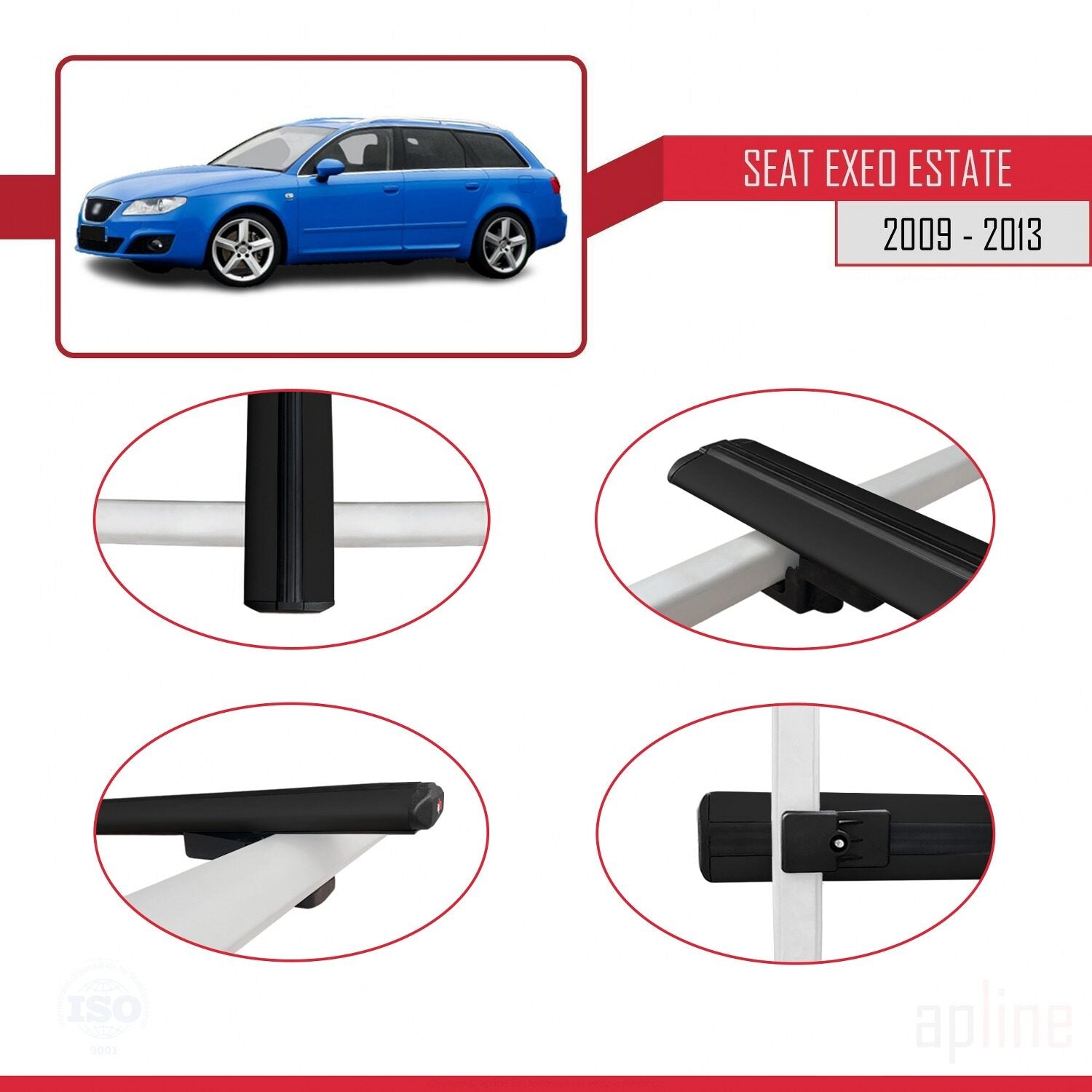 Compatible with Seat Exeo (3R9) ST 2009-2013 BASIC Model Car Roof Rack Cross Bar Black Aluminium 2 Bars