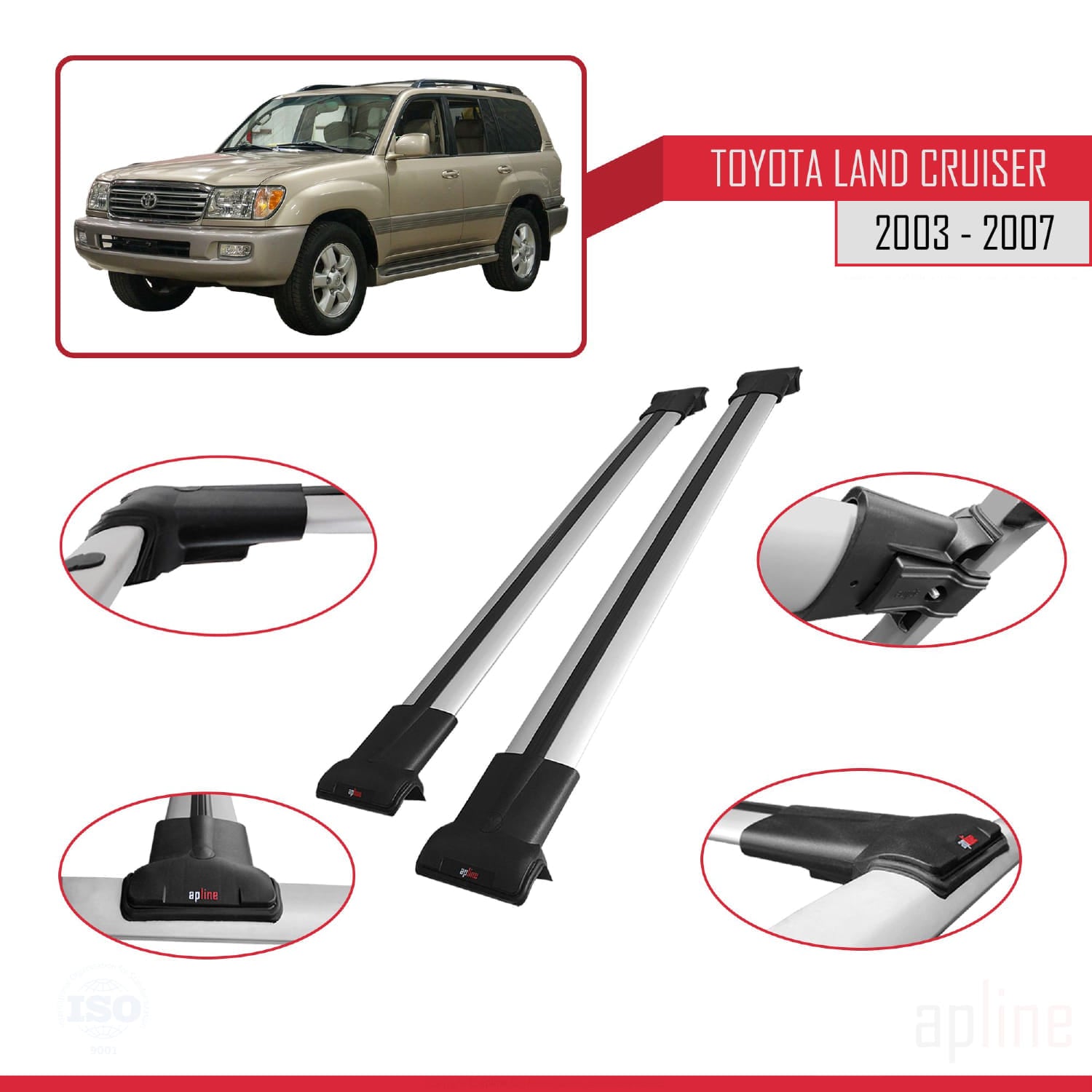 Compatible avec Toyota Land Cruiser (J100) 2003-2007 FLY Model Barres de Toit Railing Porte-Bagages de Voiture Gris Aluminium 2 Barres