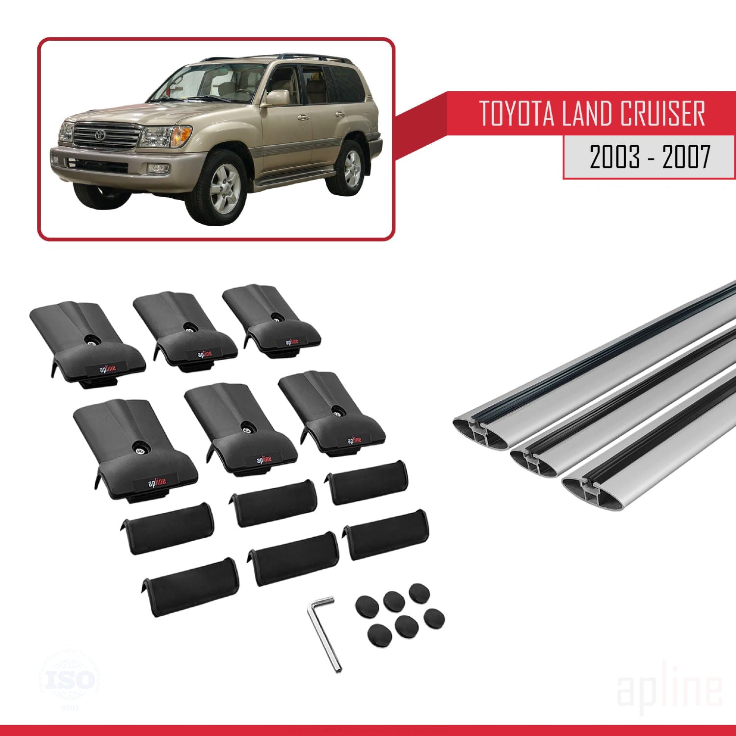 Compatible avec Toyota Land Cruiser (J100) 2003-2007 FLY Model Barres de Toit Railing Porte-Bagages de Voiture Gris Aluminium 3 Barres