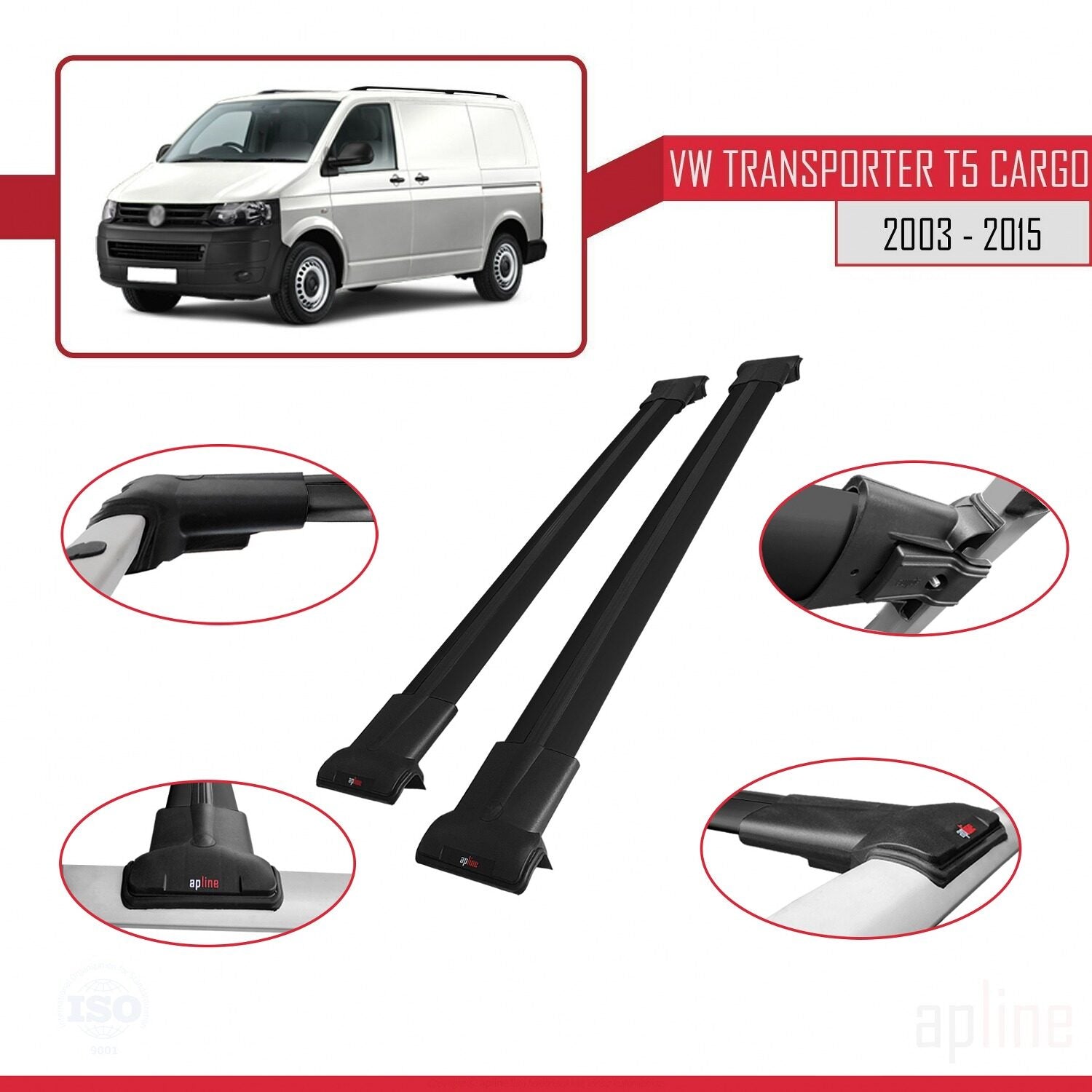 Compatible avec Volkswagen T5 Transporter 2003-2015 FLY Model Barres de Toit Railing Porte-Bagages de Voiture Noir Aluminium 2 Barres