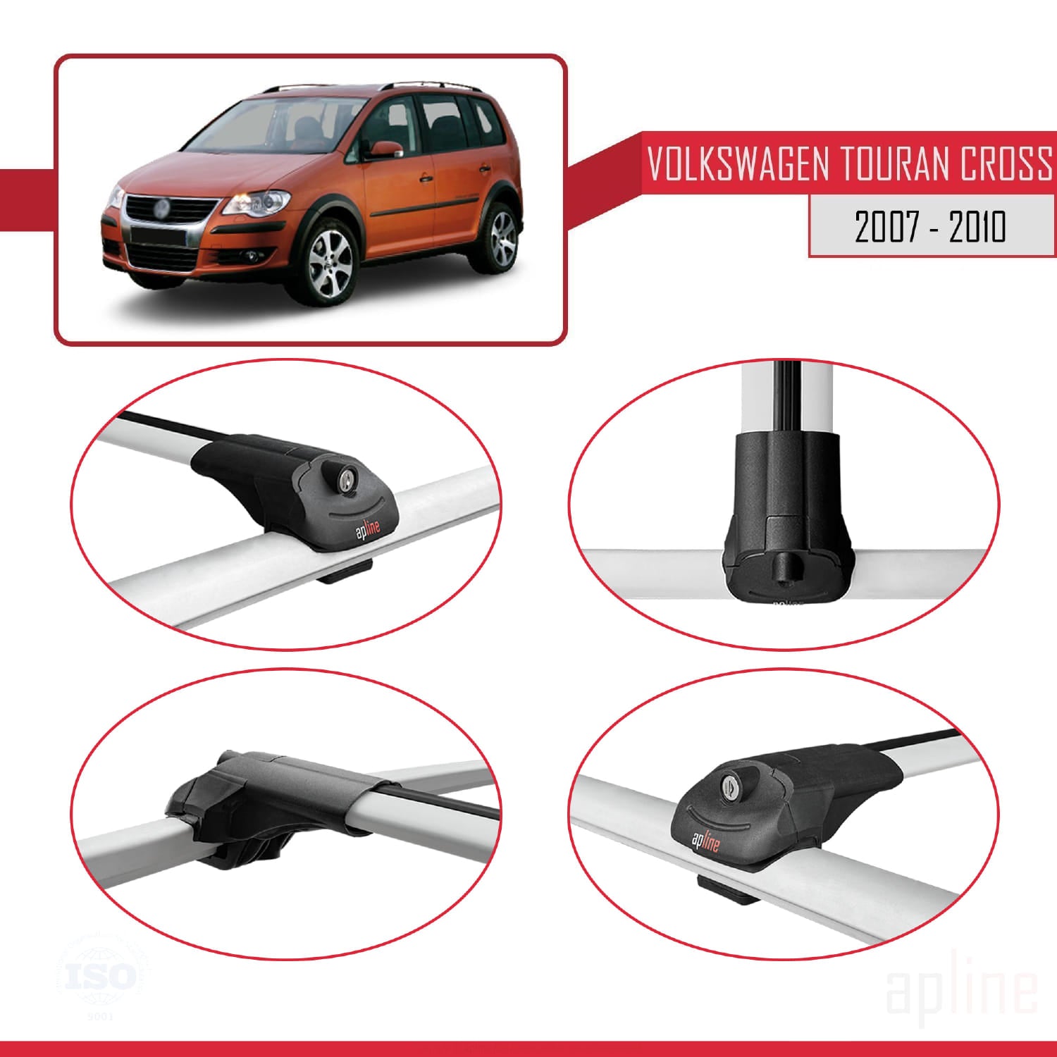 Compatible avec Volkswagen Touran Cross 2007-2010 ACE-1 Barres de Toit Railing Porte-Bagages de Voiture Gris Aluminium 2 Barres