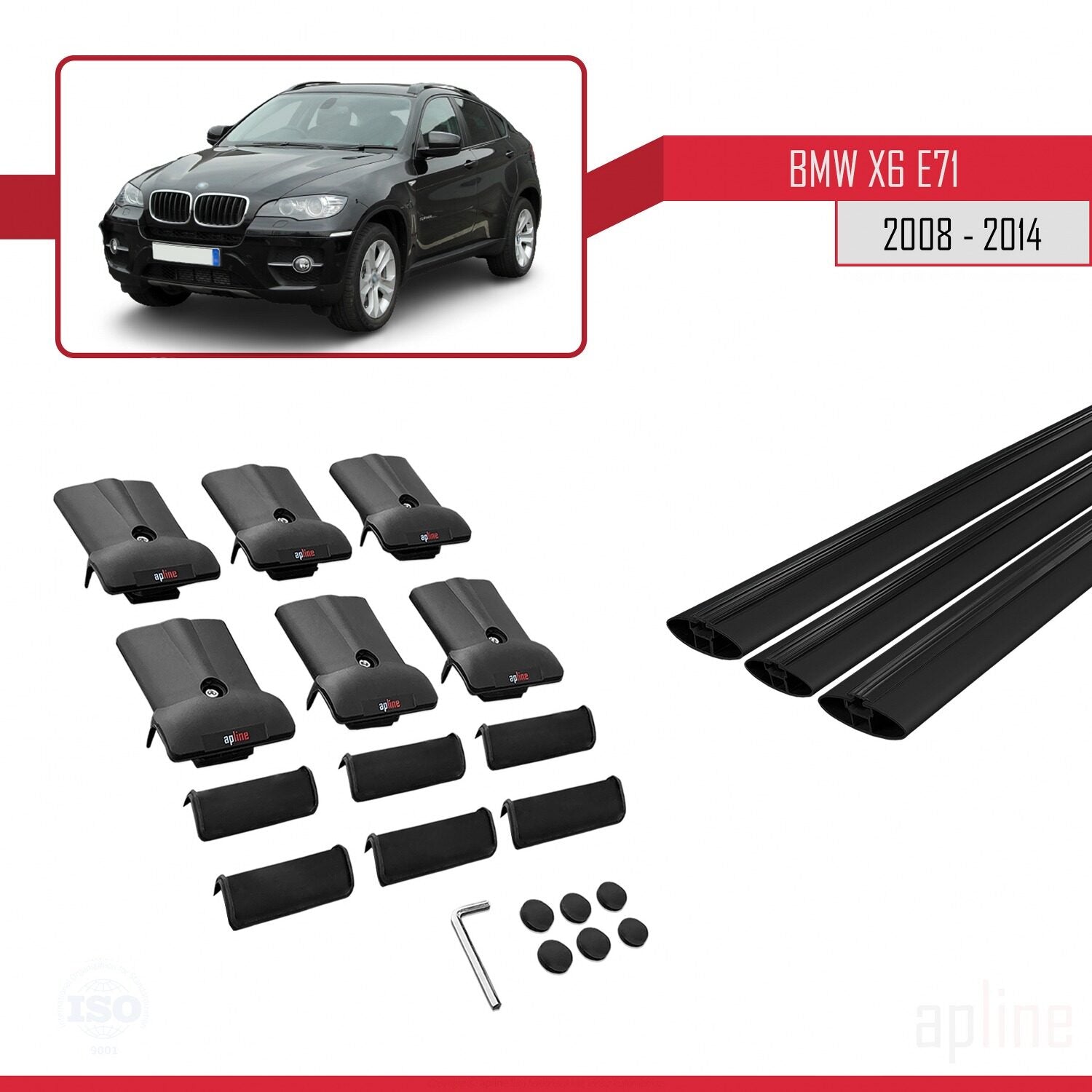 Compatible avec BMW X6 (E71) 2008-2014 FLY Model Barres de Toit Railing Porte-Bagages de Voiture Noir Aluminium 3 Barres