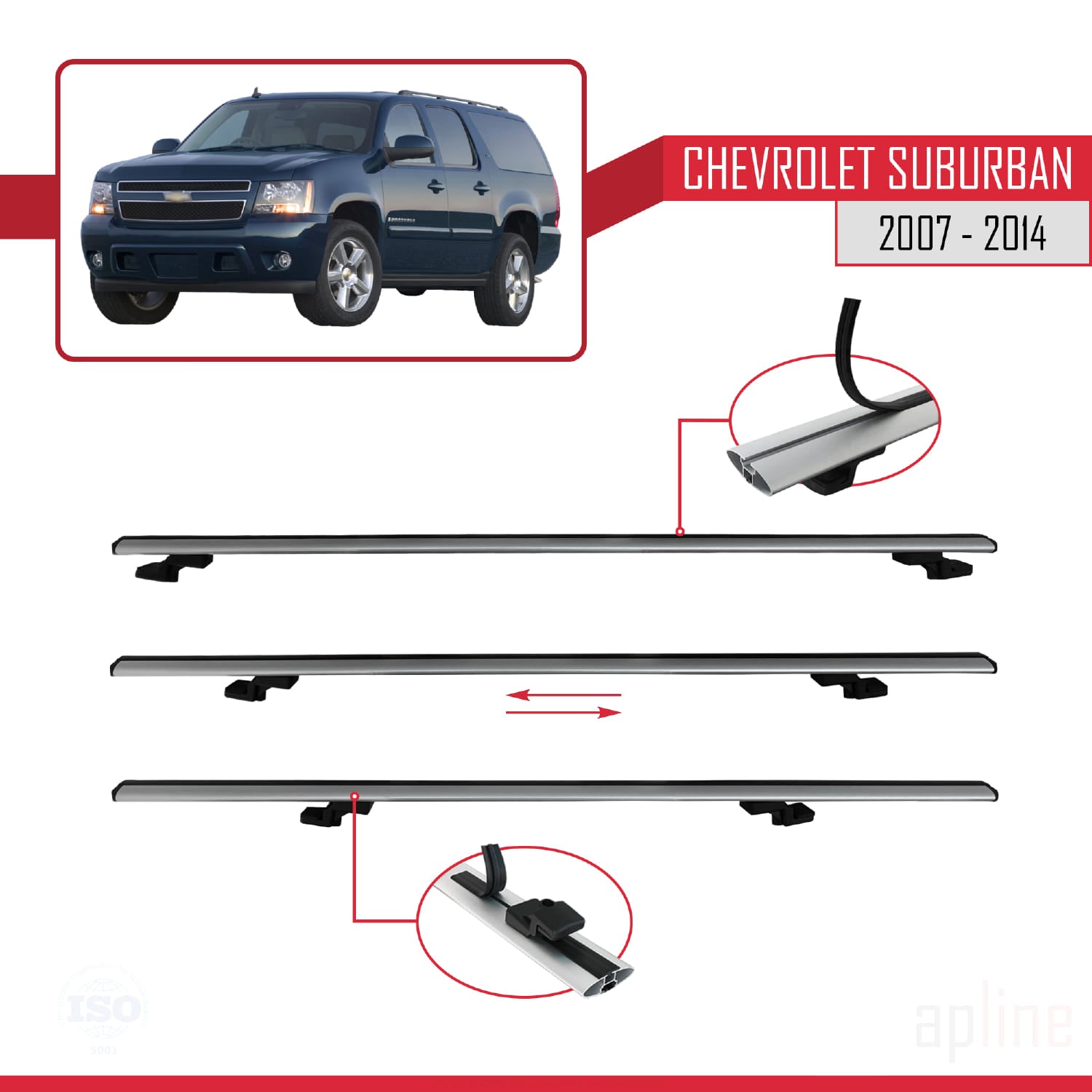 Compatible avec Chevrolet Suburban 2007-2014 BASIC Model Barres de Toit Railing Porte-Bagages de Voiture Gris Aluminium 4 Barres