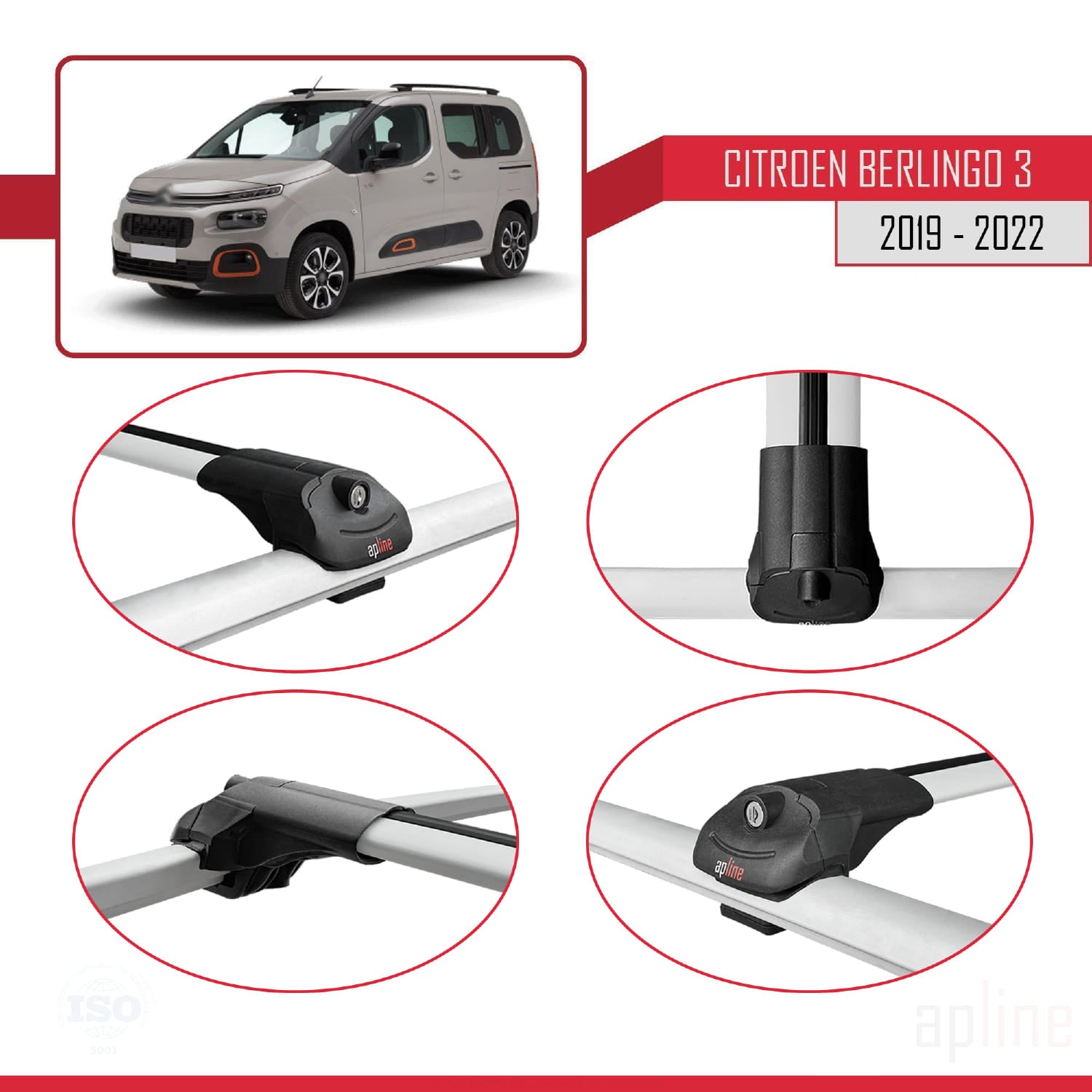 Compatible avec Citroen Berlingo 3 (K9) 2019-2022 ACE-1 Barres de Toit Railing Porte-Bagages de Voiture Gris Aluminium 4 Barres