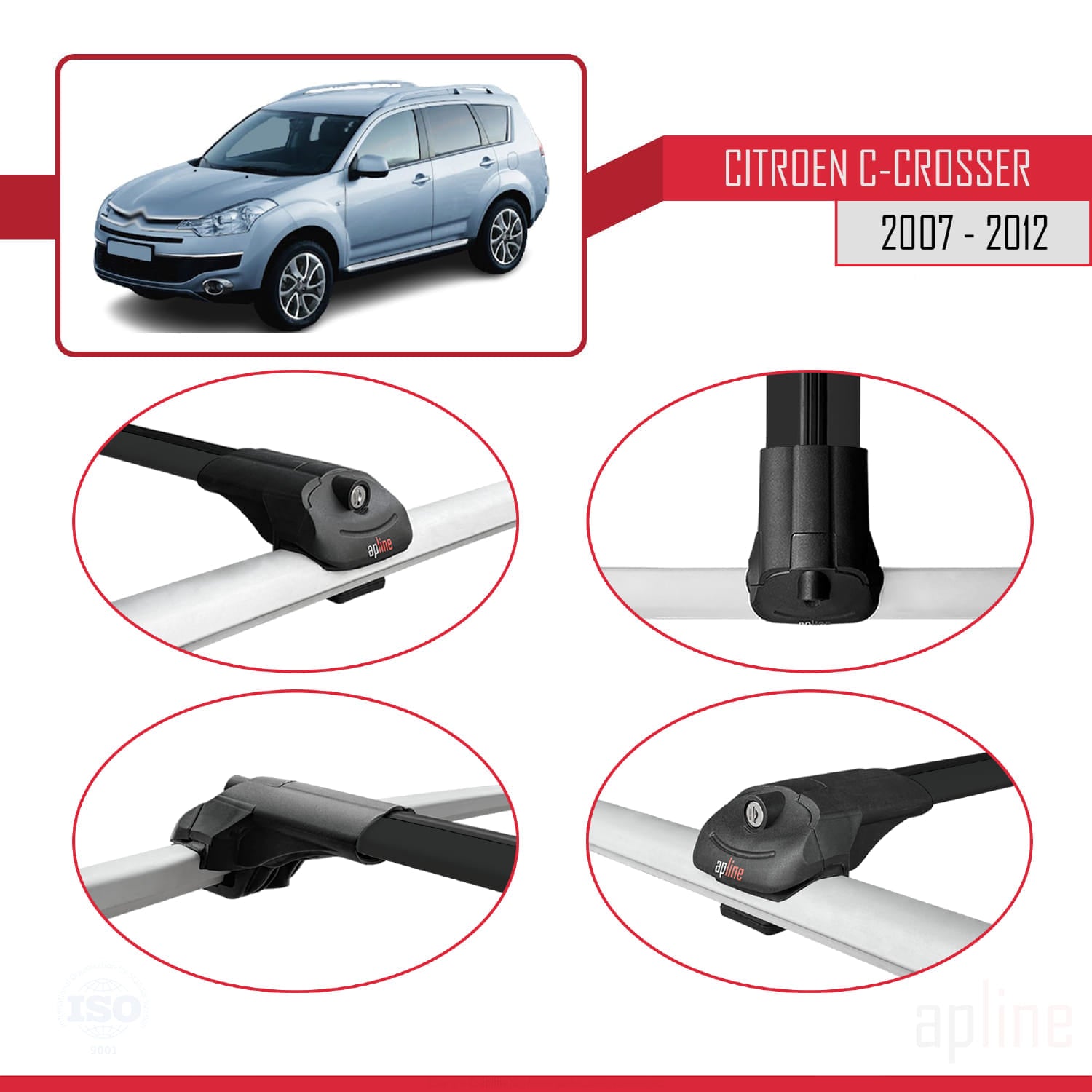 Compatible avec Citroen C-Crosser 2007-2012 ACE-1 Barres de Toit Railing Porte-Bagages de Voiture Noir Aluminium 3 Barres