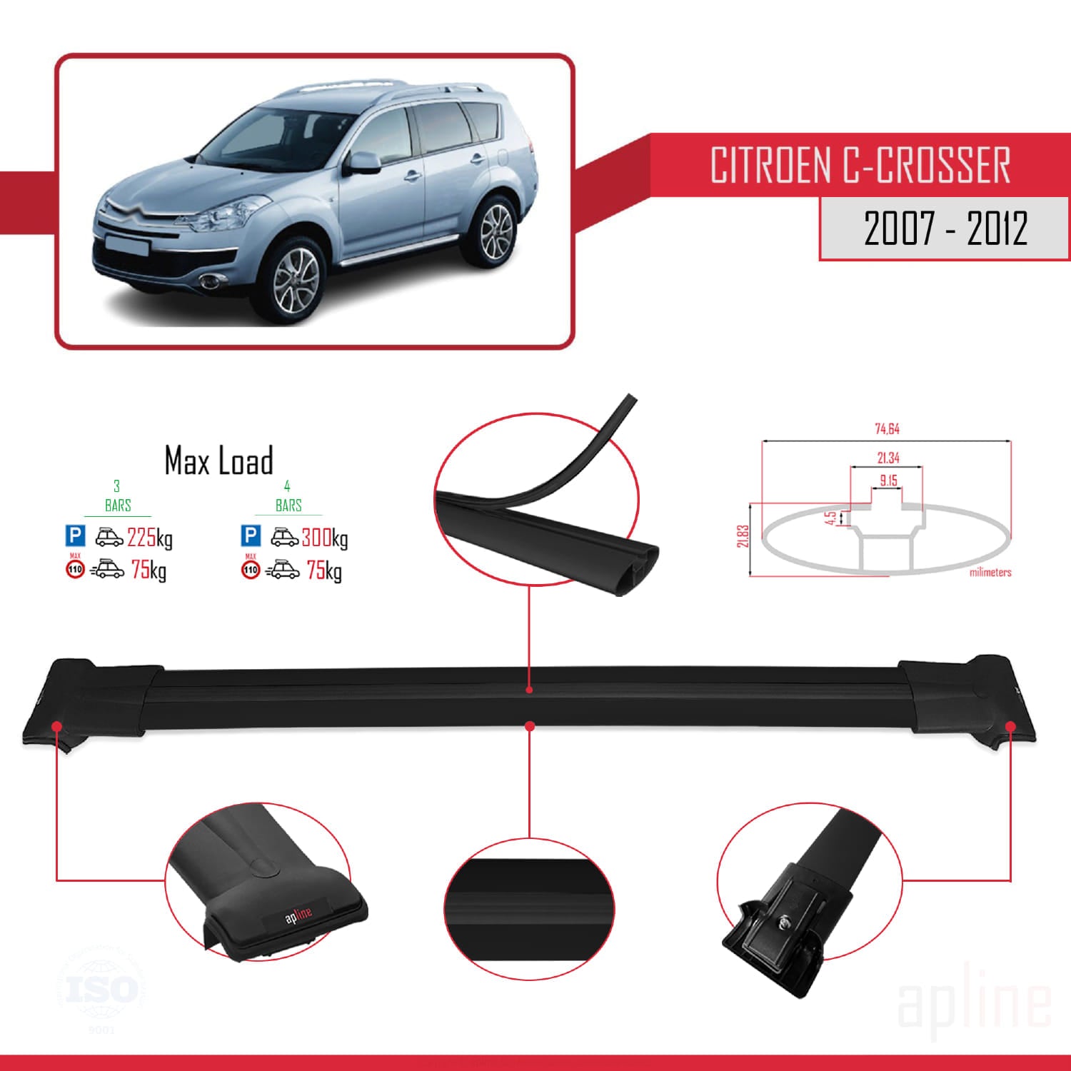 Compatible avec Citroen C-Crosser 2007-2012 FLY Model Barres de Toit Railing Porte-Bagages de Voiture Noir Aluminium 3 Barres