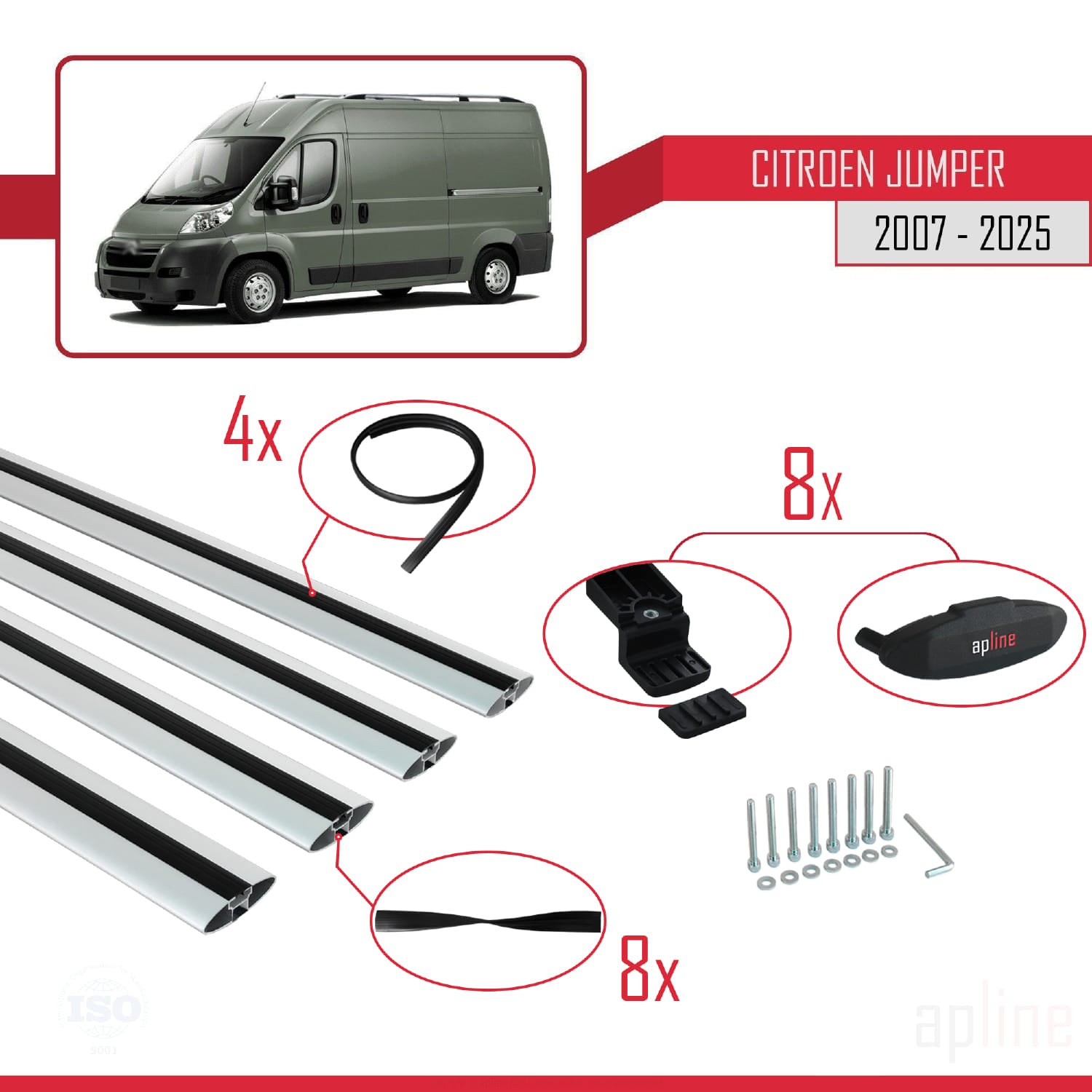 Compatible avec Citroen Jumper 2 2007-2025 BASIC Model Barres de Toit Railing Porte-Bagages de Voiture Gris Aluminium 4 Barres