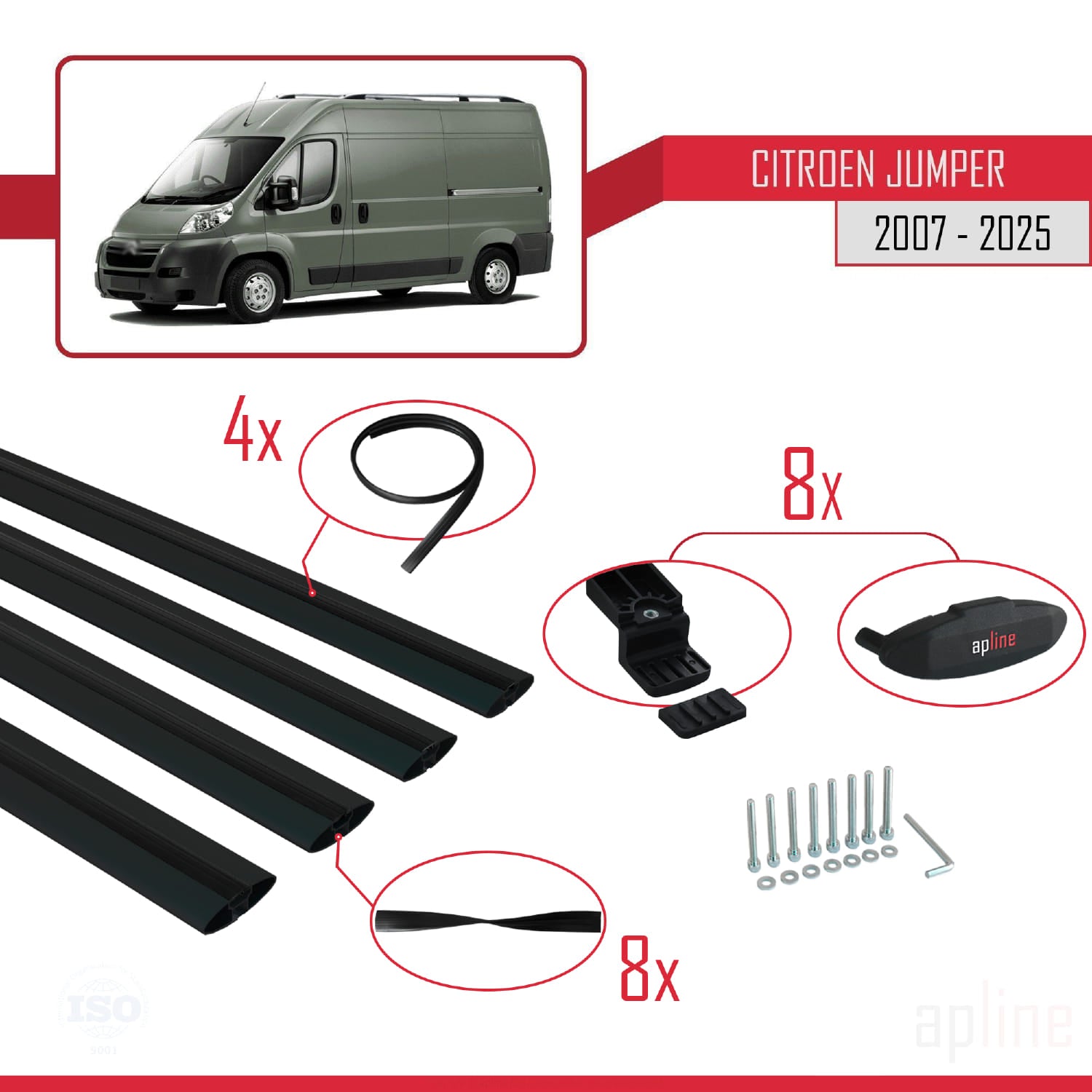 Compatible avec Citroen Jumper 2 2007-2025 BASIC Model Barres de Toit Railing Porte-Bagages de Voiture Noir Aluminium 4 Barres