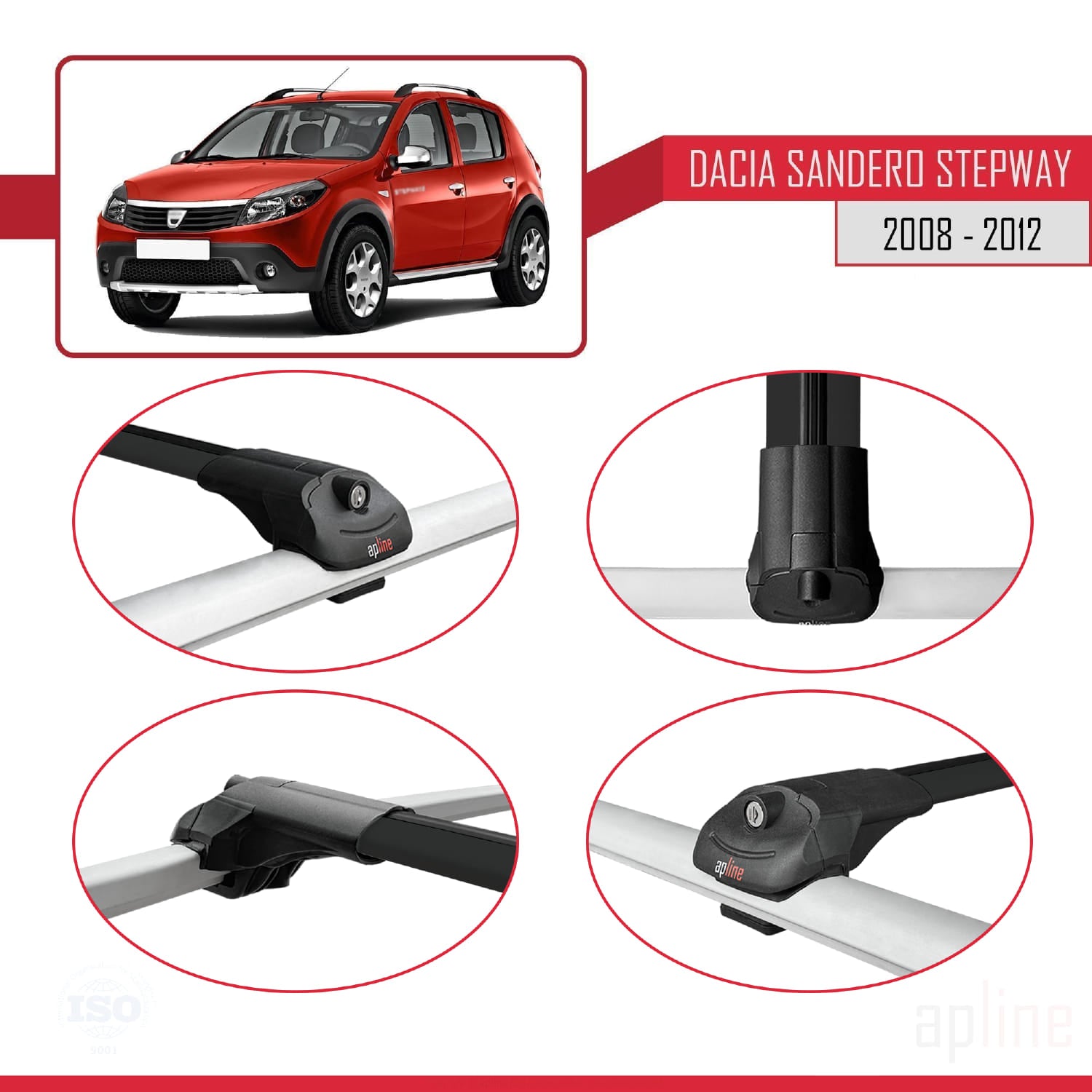 Compatible avec Dacia Sandero Stepway 2008-2012 ACE-1 Barres de Toit Railing Porte-Bagages de Voiture Noir Aluminium 3 Barres