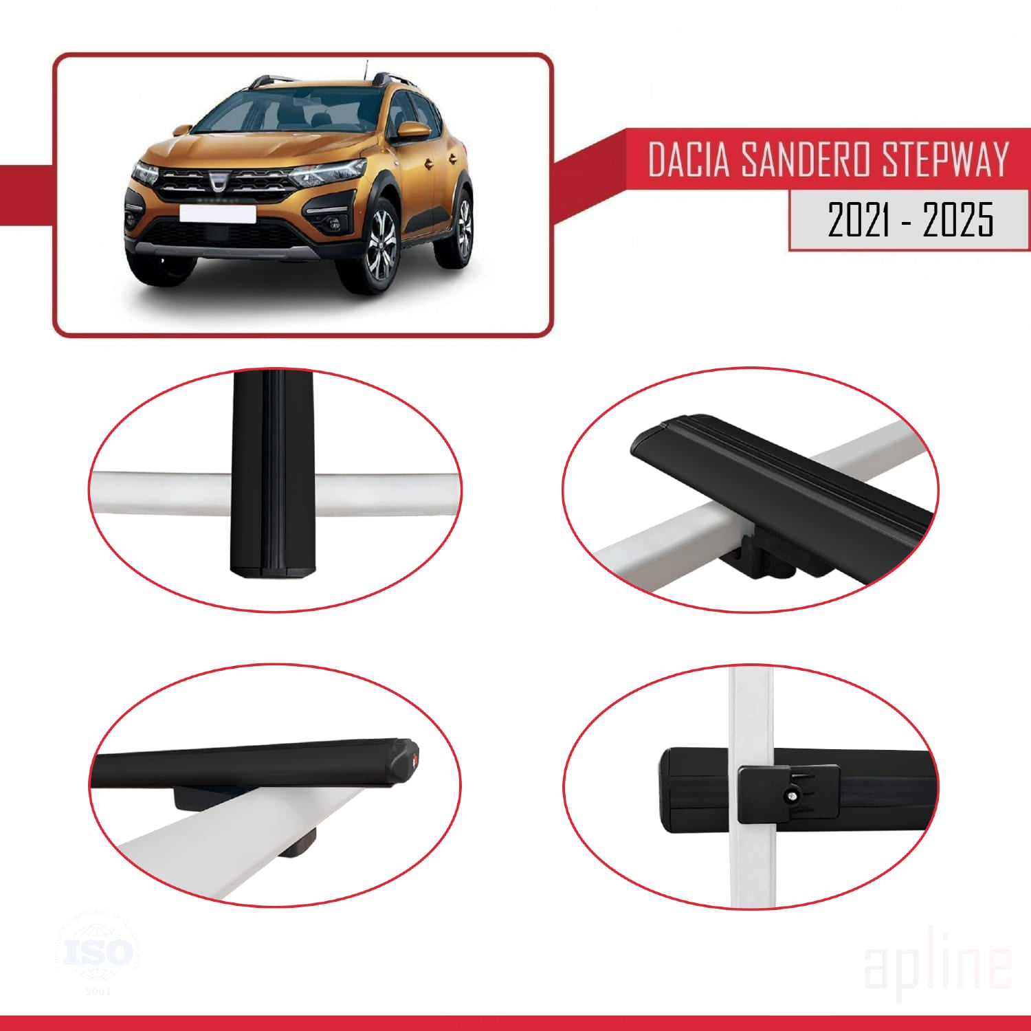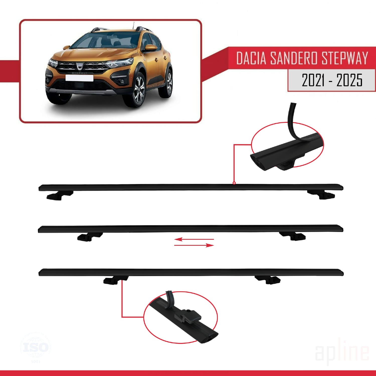 Compatible avec Dacia Sandero Stepway 3 2021-2025 BASIC Model Barres de Toit Railing Porte-Bagages de Voiture Noir Aluminium 2 Barres
