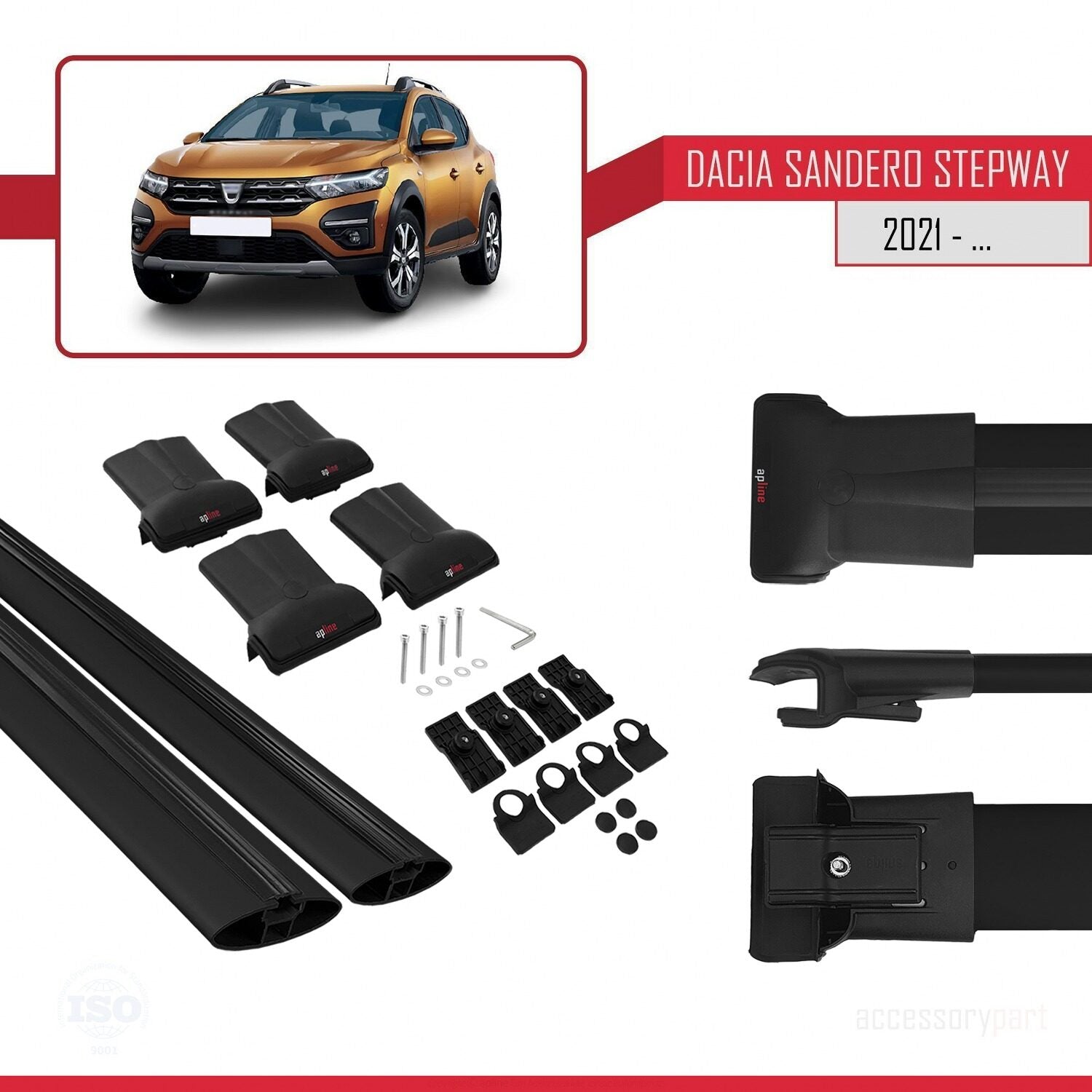 Compatible avec Dacia Sandero Stepway 3 2021-2025 FLY Model Barres de Toit Railing Porte-Bagages de Voiture Noir Aluminium 2 Barres