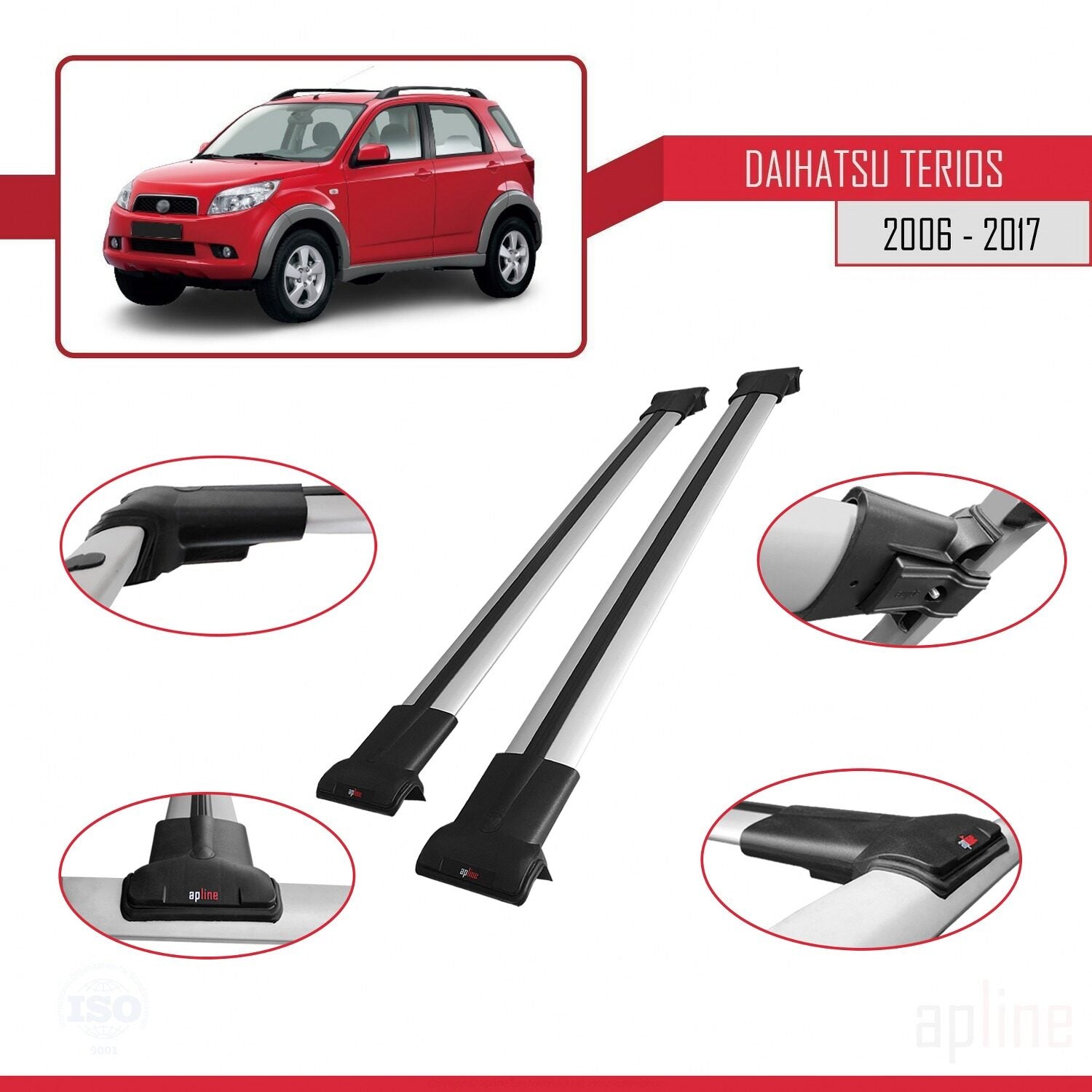 Compatible avec Daihatsu Terios 2 (J200) 2006-2017 FLY Model Barres de Toit Railing Porte-Bagages de Voiture Gris Aluminium 2 Barres