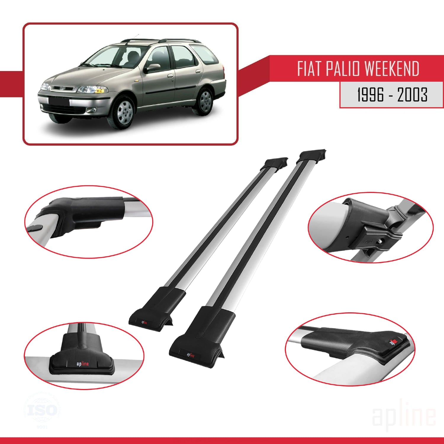 Compatible avec Fiat Palio (178) Weekend 1996-2003 FLY Model Barres de Toit Railing Porte-Bagages de Voiture Gris Aluminium 2 Barres