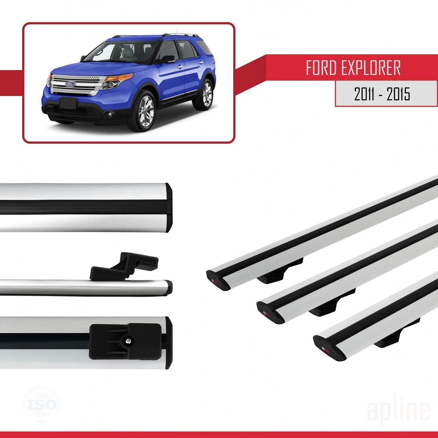 Compatible avec Ford Explorer 5 (U502) Pre-Facelift 2011-2015 BASIC Model Barres de Toit Railing Porte-Bagages de Voiture Gris Aluminium 3 Barres