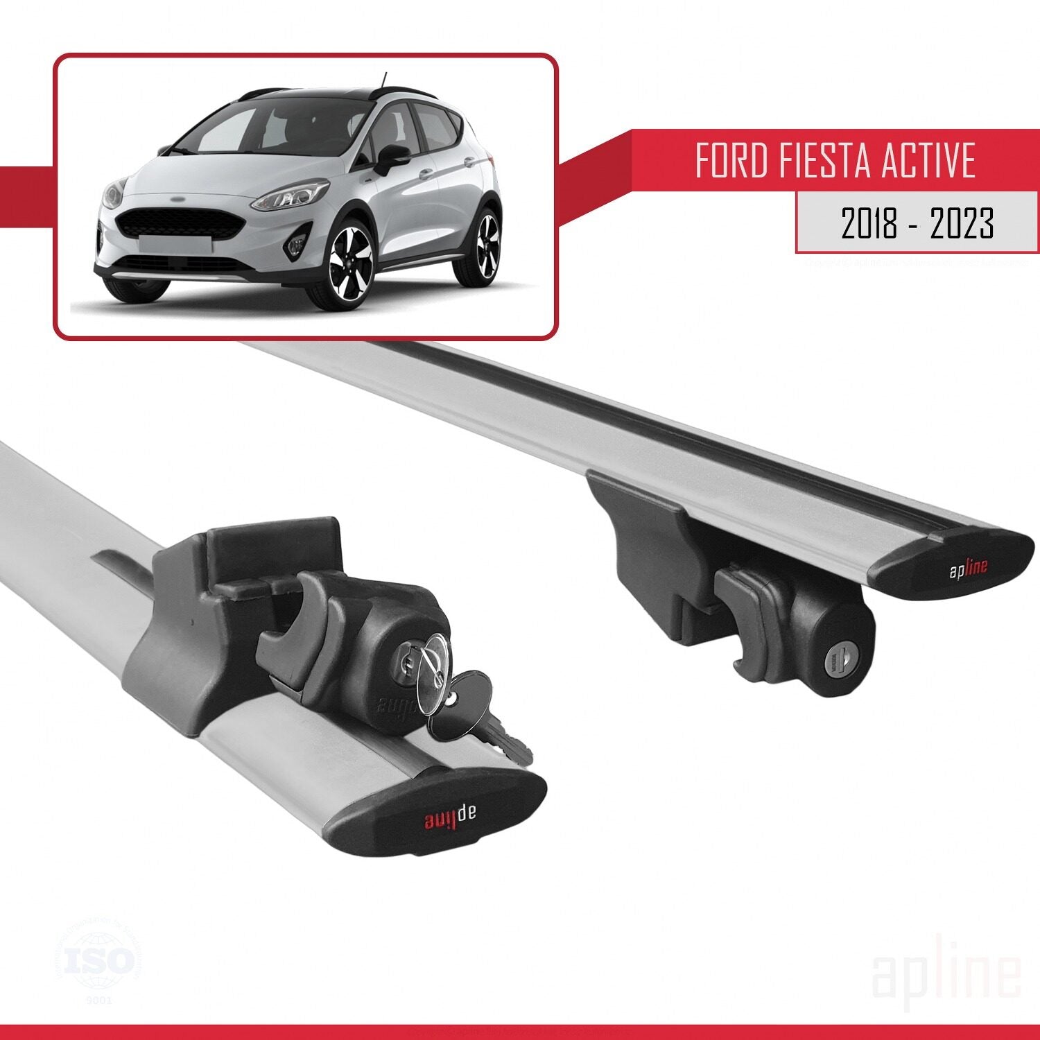 Compatible avec Ford Fiesta 7 Active 2018-2023 HOOK Model Barres de Toit Railing Porte-Bagages de Voiture Gris Aluminium 2 Barres