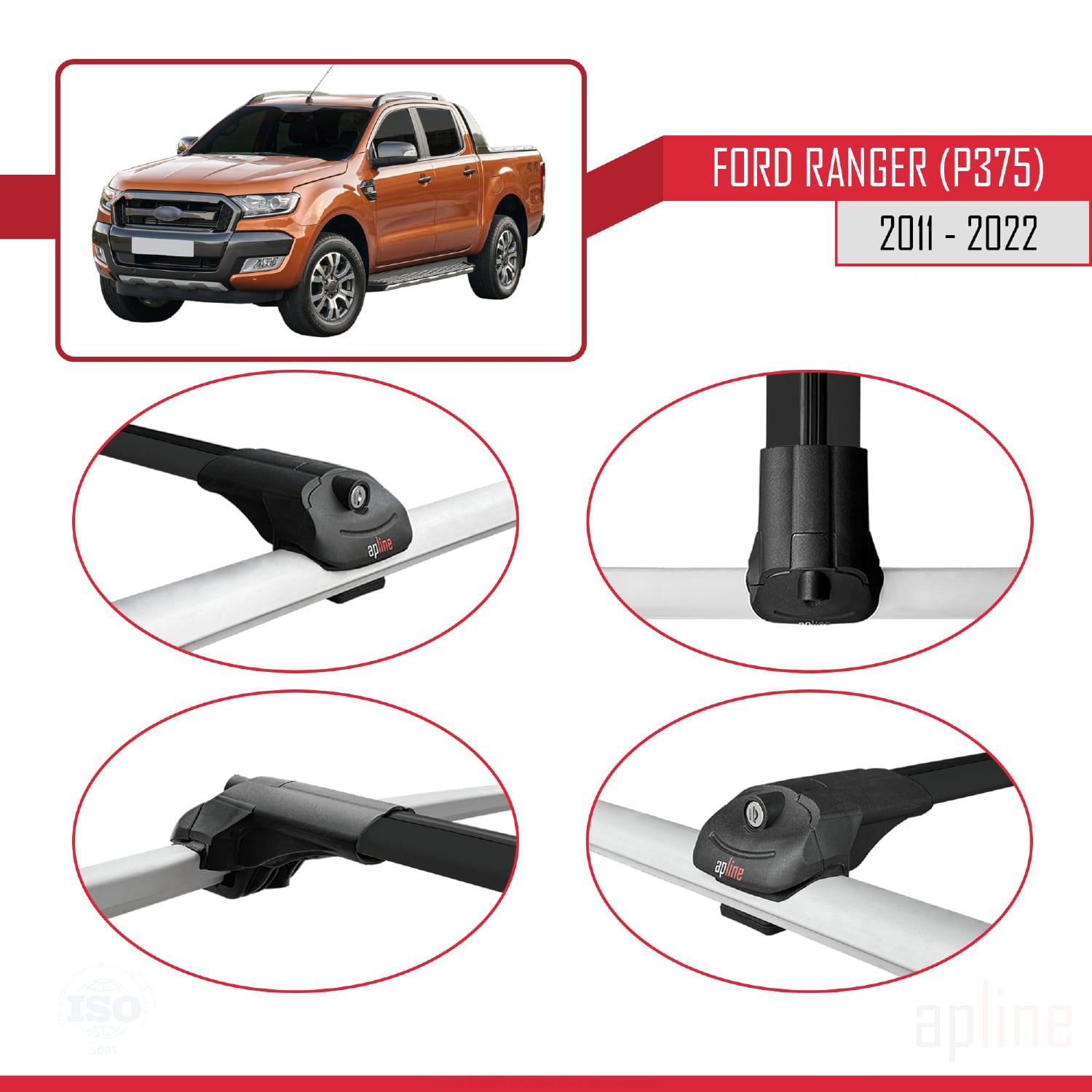 Compatible avec Ford Ranger (P375) 2011-2022 ACE-1 Barres de Toit Railing Porte-Bagages de Voiture Noir Aluminium 2 Barres