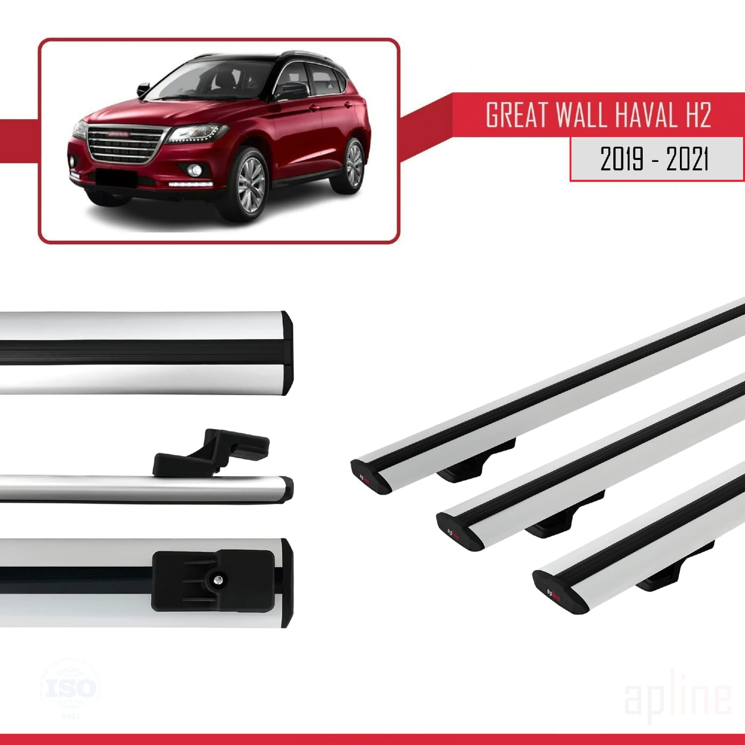 Compatible avec Great Wall Haval H2 2019-2021 BASIC Model Barres de Toit Railing Porte-Bagages de Voiture Gris Aluminium 3 Barres
