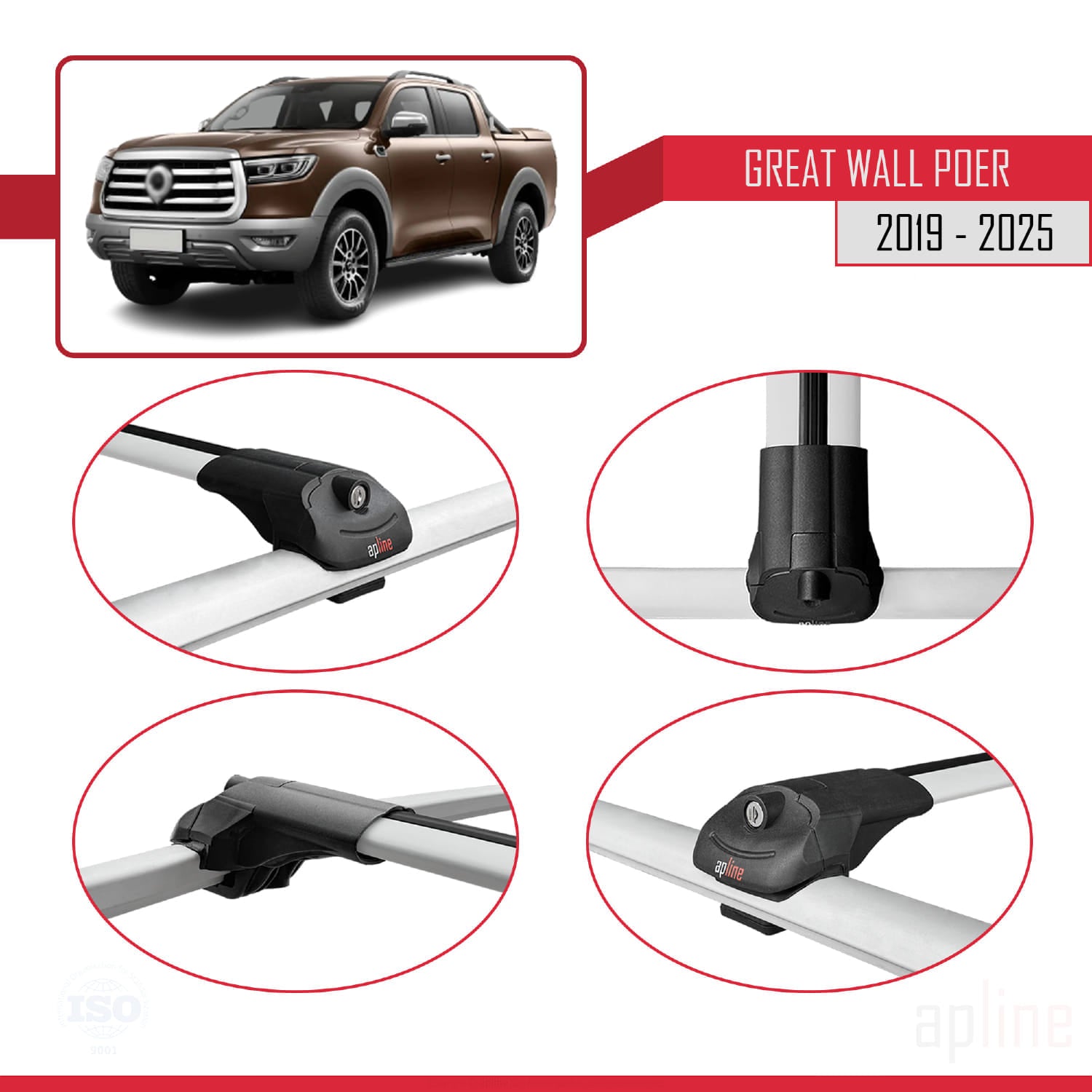 Compatible avec Great Wall Poer 2019-2025 ACE-1 Barres de Toit Railing Porte-Bagages de Voiture Gris Aluminium 3 Barres