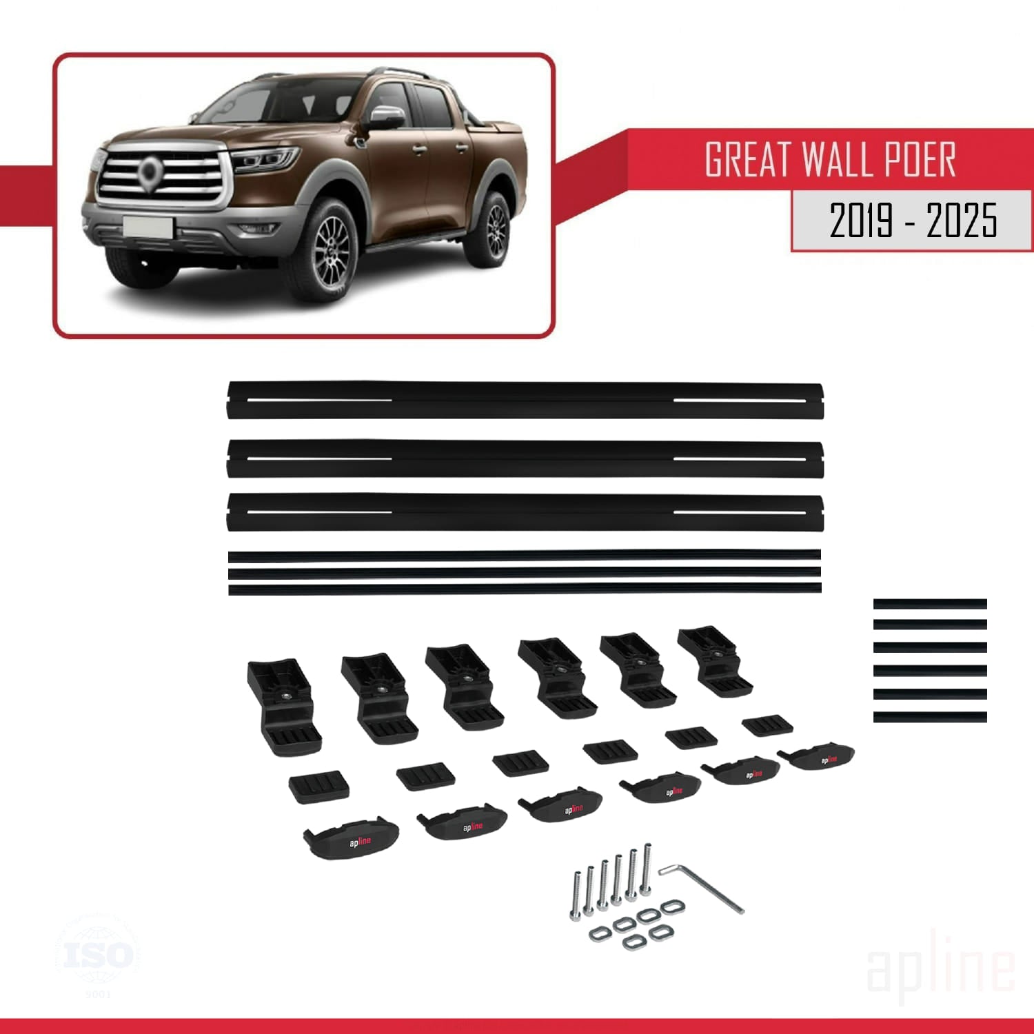 Compatible avec Great Wall Poer 2019-2025 BASIC Model Barres de Toit Railing Porte-Bagages de Voiture Noir Aluminium 3 Barres