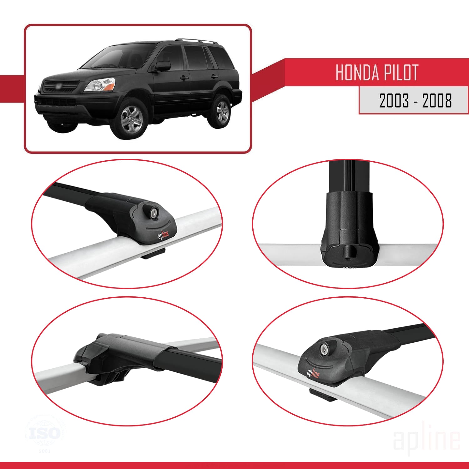 Compatible avec Honda Pilot 2003-2008 ACE-1 Barres de Toit Railing Porte-Bagages de Voiture Noir Aluminium 3 Barres