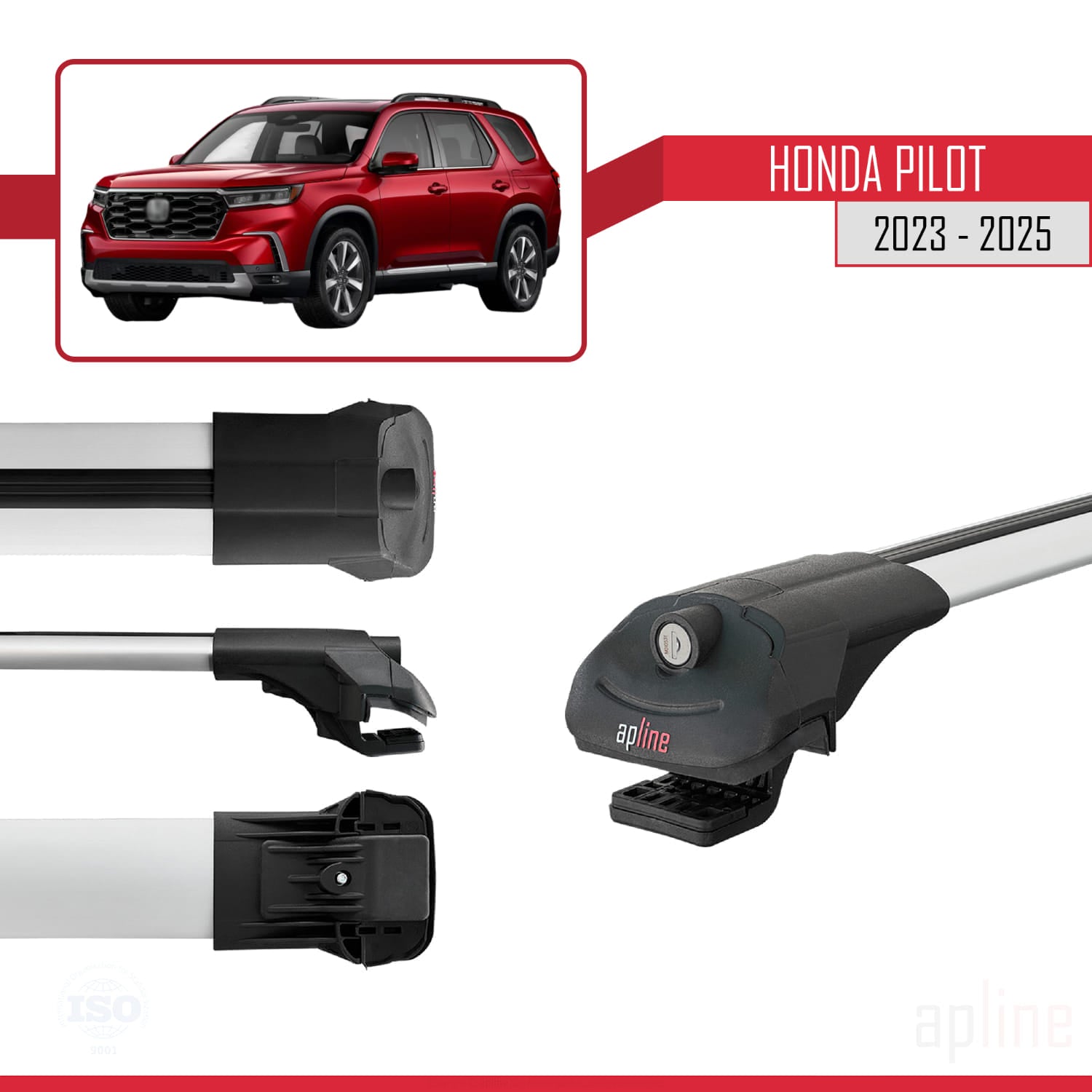 Compatible avec Honda Pilot 2023-2025 ACE-1 Barres de Toit Railing Porte-Bagages de Voiture Gris Aluminium 2 Barres