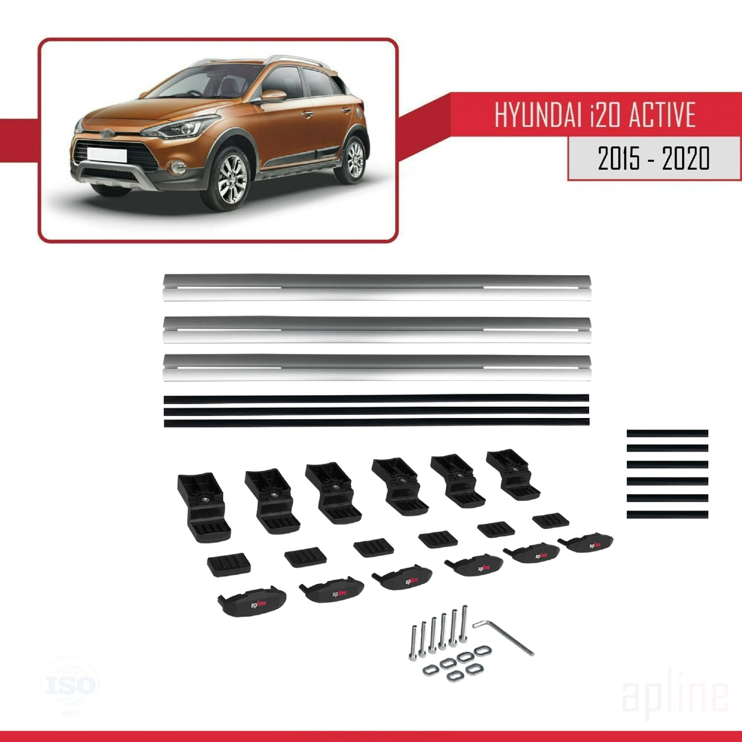 Compatible avec Hyundai i20 II Active 2015-2019 BASIC Model Barres de Toit Railing Porte-Bagages de Voiture Gris Aluminium 3 Barres
