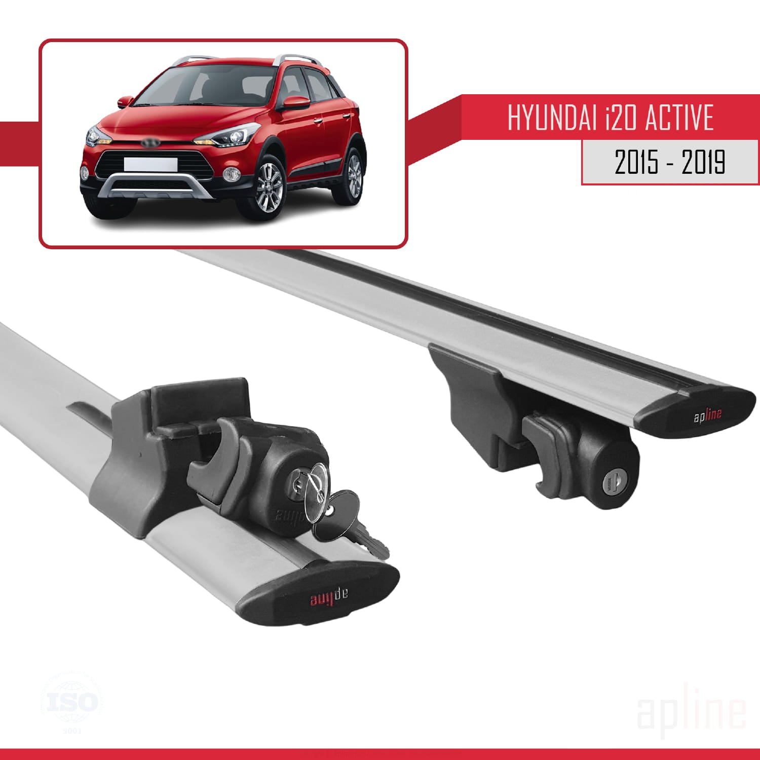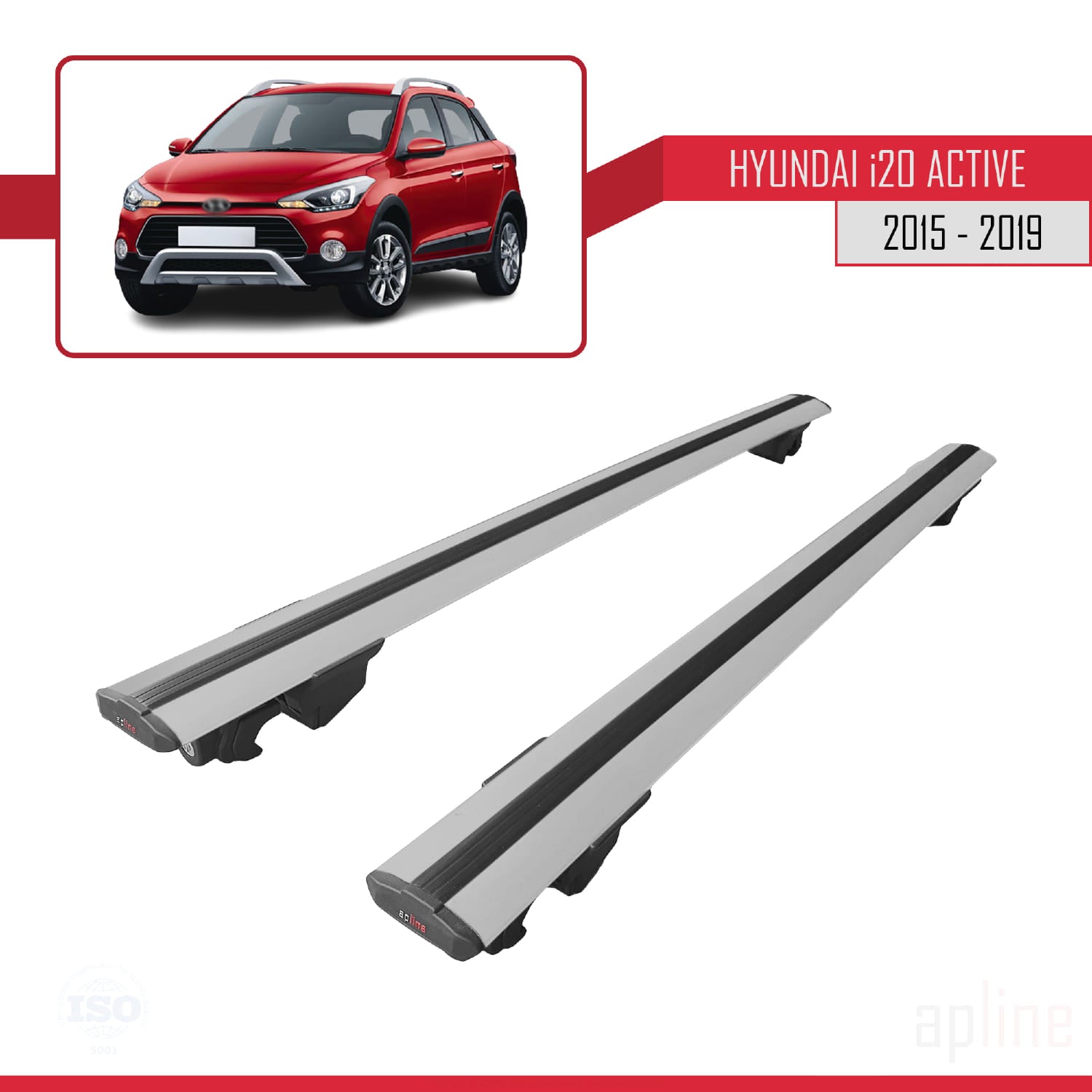 Compatible avec Hyundai i20 II Active 2015-2019 HOOK Model Barres de Toit Railing Porte-Bagages de Voiture Gris Aluminium 2 Barres