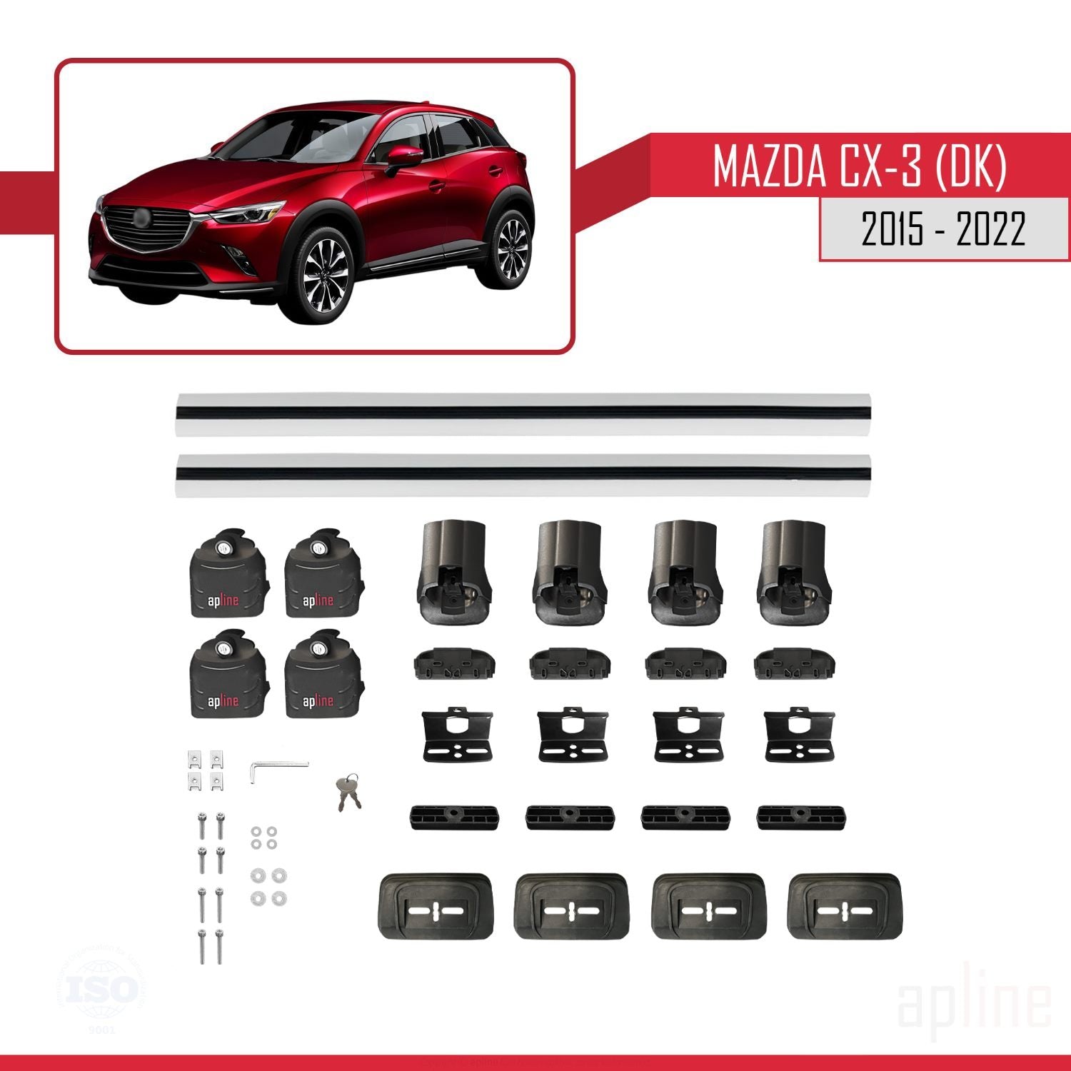 Compatible avec Mazda CX-3 (DK) 2015-2022 ACE-3 Barres de Toit Railing Porte-Bagages de Voiture Gris Aluminium 2 Barres