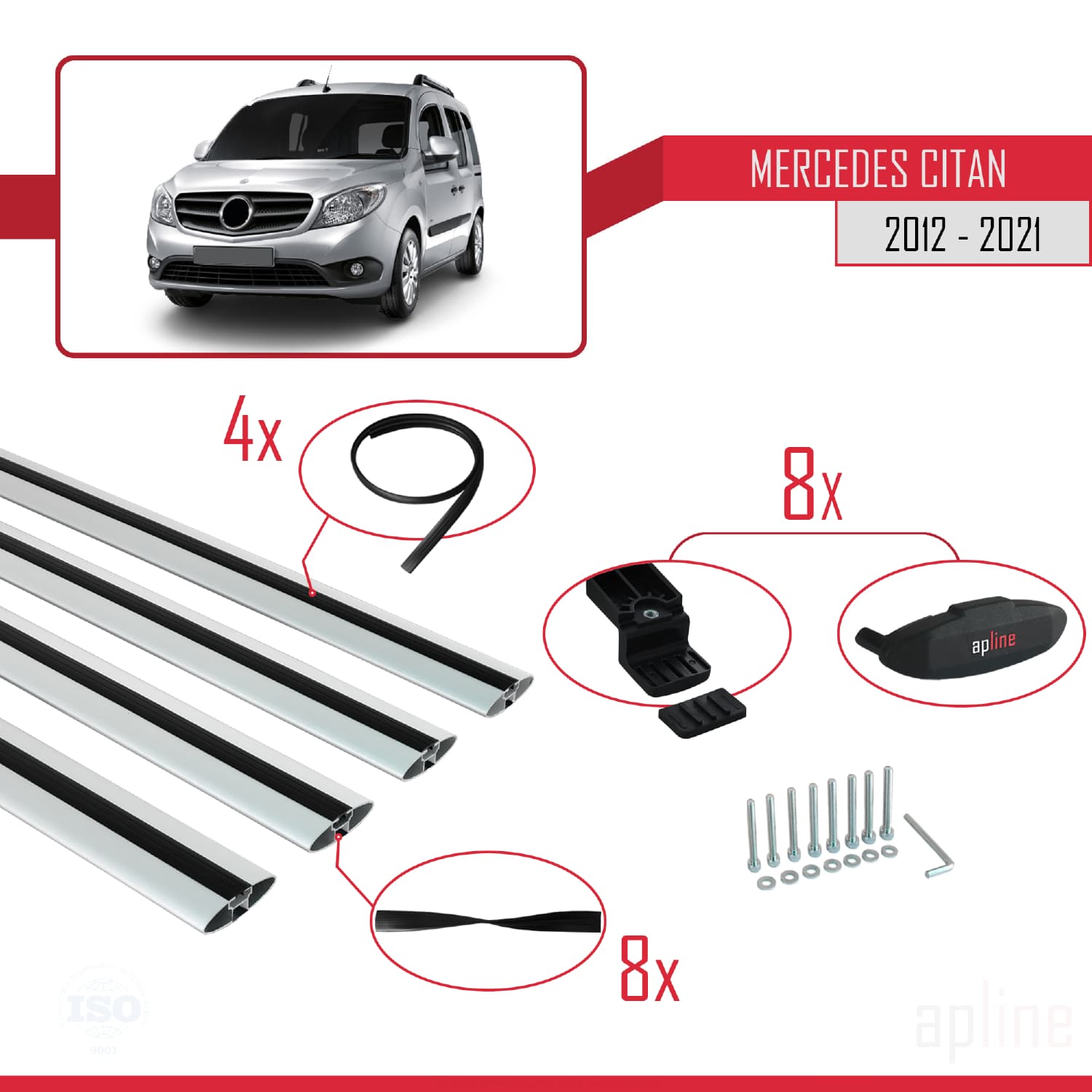 Compatible avec Mercedes Citan (W415) 2012-2021 BASIC Model Barres de Toit Railing Porte-Bagages de Voiture Gris Aluminium 4 Barres