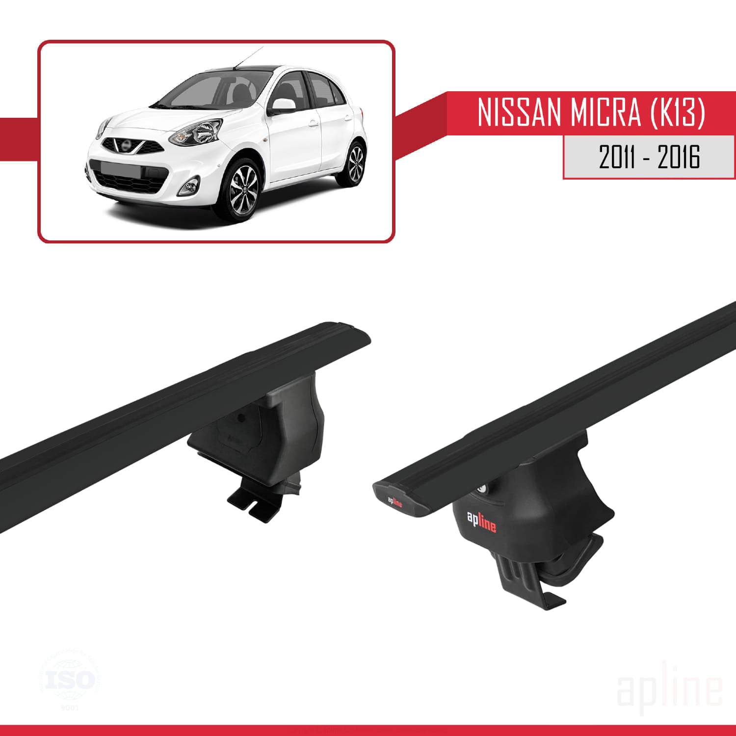Compatible avec Nissan Micra 4 (K14) 2011-2016 ACE-4 Barres de Toit Railing Porte-Bagages de Voiture Noir Aluminium 2 Barres