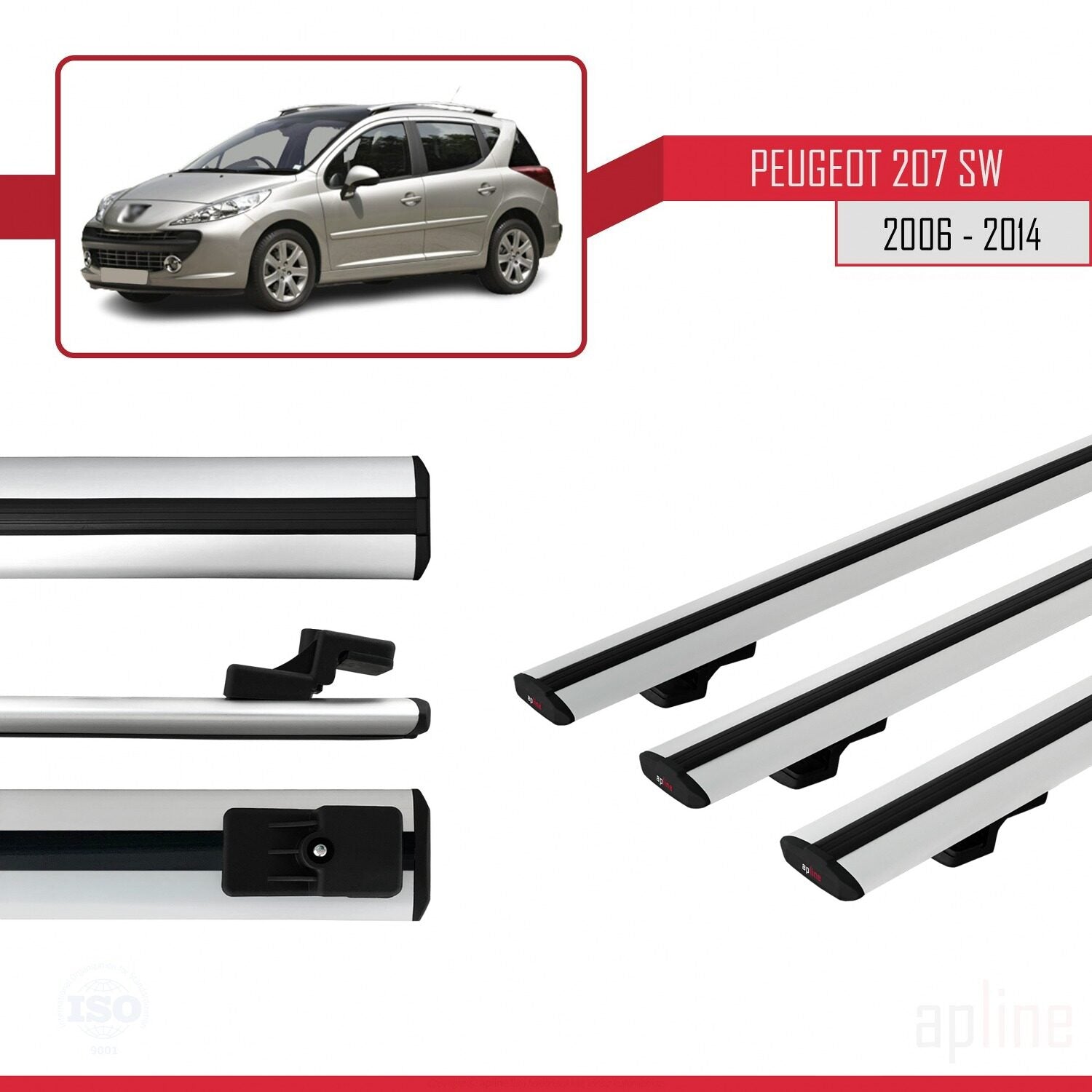 Compatible avec Peugeot 207 Break 2006-2014 BASIC Model Barres de Toit Railing Porte-Bagages de Voiture Gris Aluminium 3 Barres