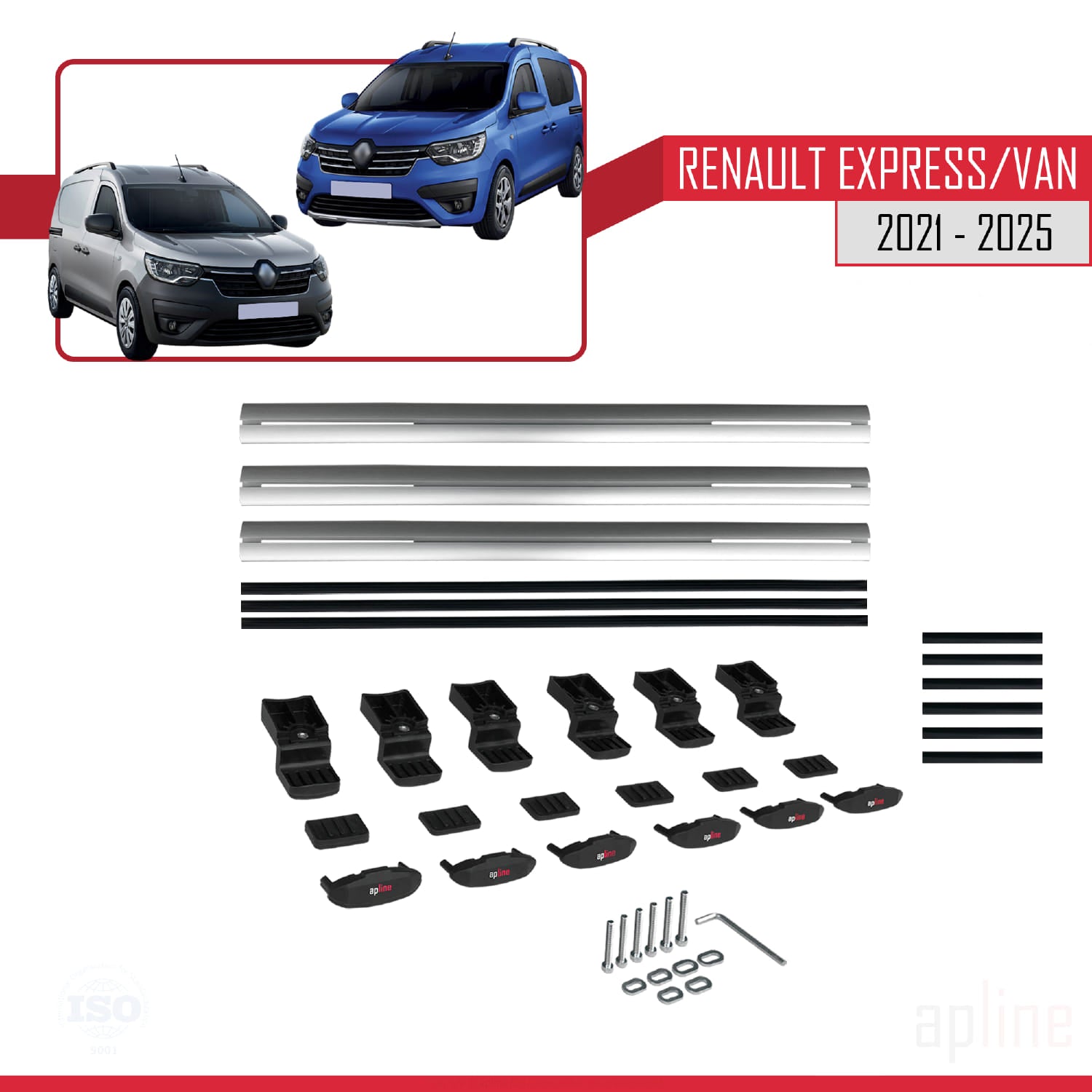Compatible avec Renault Express 2021-2025 BASIC Model Barres de Toit Railing Porte-Bagages de Voiture Gris Aluminium 3 Barres