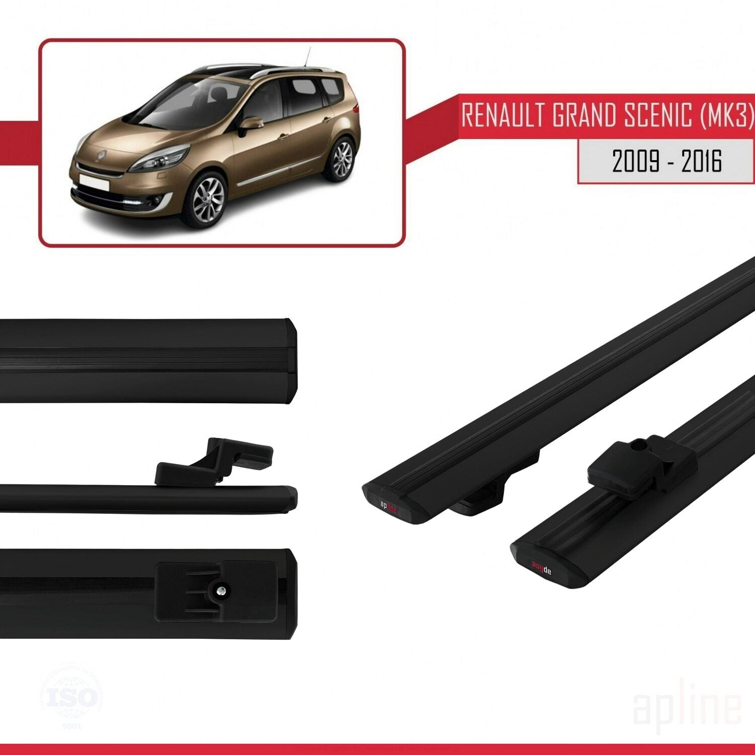 Compatible avec Renault Grand Scenic 3 2009-2016 BASIC Model Barres de Toit Railing Porte-Bagages de Voiture Noir Aluminium 2 Barres