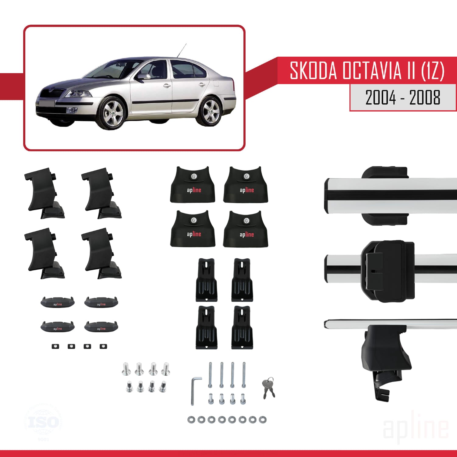 Compatible avec Skoda Octavia 2 (1Z) Pre-Facelift 2004-2008 ACE-4 Barres de Toit Railing Porte-Bagages de Voiture Gris Aluminium 2 Barres