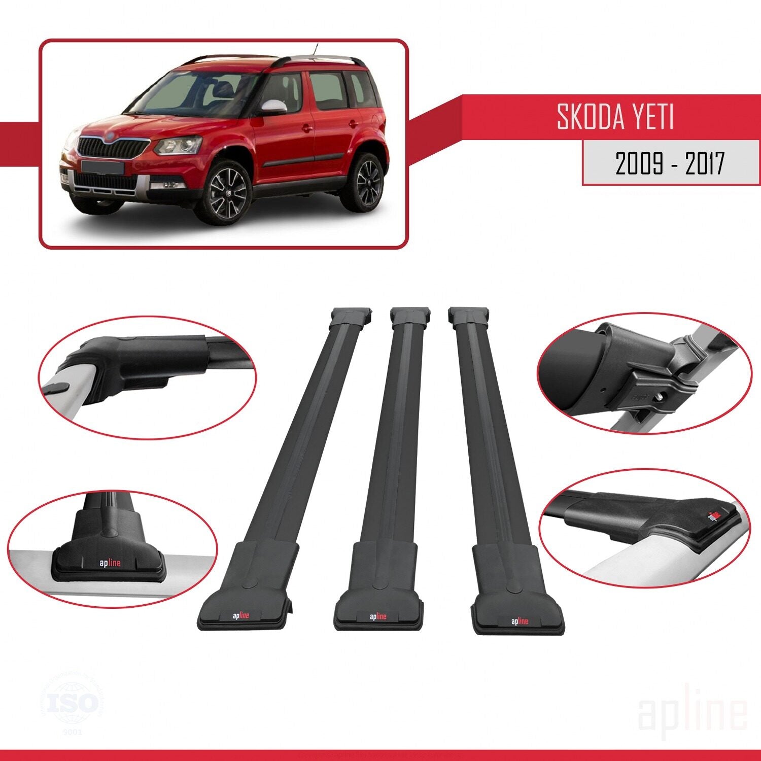 Compatible avec Skoda Yeti 2009-2017 FLY Model Barres de Toit Railing Porte-Bagages de Voiture Noir Aluminium 3 Barres