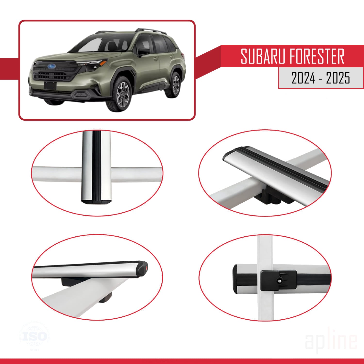 Compatible avec Subaru Forester 2024-2025 BASIC Model Barres de Toit Relevé (Raised Roof) Railing Porte-Bagages de Voiture Gris Aluminium 3 Barres