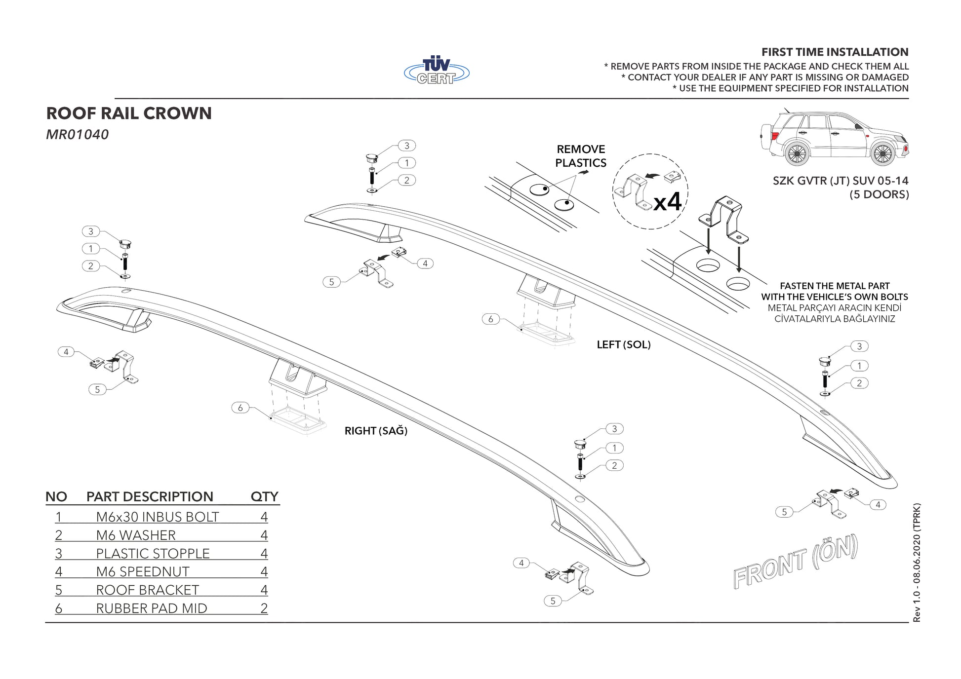 Ces rails de toit conçus spécialement pour votre véhicule sont la solution parfaite pour vos besoins de transport de charge. Ce produit vous permet de transporter en toute sécurité divers équipements tels que des vélos, des skis, des planches de surf et du matériel de camping. Ces rails de toit facilitent le transport de charges sur le toit de votre véhicule et vous offrent une expérience de voyage confortable. Grâce à leur durabilité, leur design élégant et leur installation pratique, elles constituent un choix idéal pour tous vos besoins de transport. Le corps en aluminium métallique de norme 6063 est anodisé et résiste à diverses conditions météorologiques et aux chocs. Les capuchons sont fabriqués en matériau PA6 GF30 avec 30 % d'additif en fibre de verre. Ces rails de toit, fabriquées spécialement pour la marque et le modèle de chaque véhicule, nécessitent généralement un montage par vis, sauf pour les modèles adhésifs, et s'adaptent parfaitement à la structure du toit de votre véhicule. Pour les modèles adhésifs, un support métallique est collé sur le toit du véhicule à l'aide de silicone chaud ou froid (fourni par l'utilisateur) et les rails de toit sont ensuite vissées sur ces supports. Le processus d'installation est assez simple et grâce aux instructions de montage incluses, deux personnes peuvent effectuer l'installation sans assistance professionnelle. Le paquet comprend 2 barres en aluminium, des kits de connexion de barres et tout l'équipement nécessaire. (Les modèles adhésifs comprennent uniquement les vis, le silicone n'est pas inclus). La compatibilité avec les produits d'autres marques n'est pas garantie.