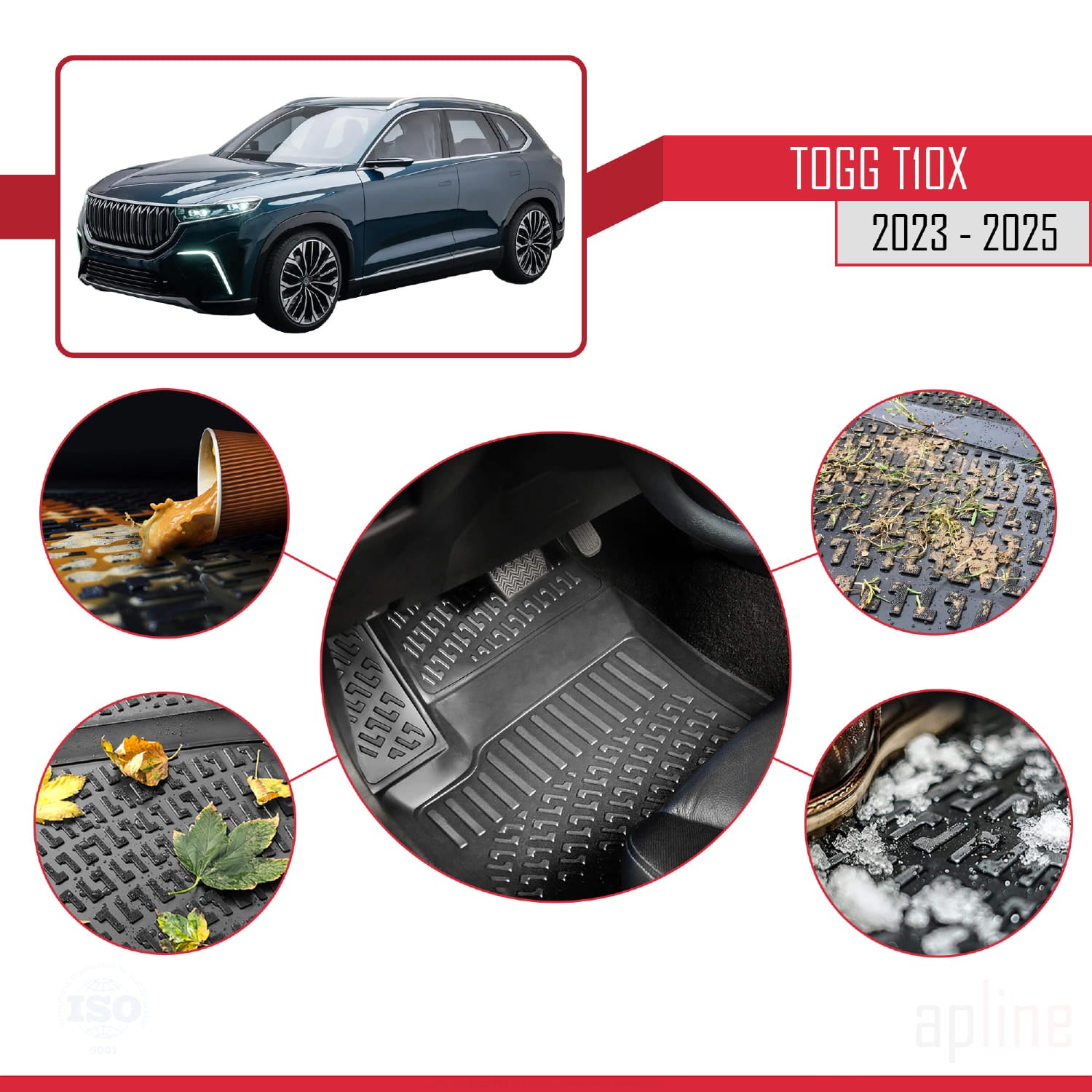 Compatible avec Togg T10X 2023-2025 4D Tapis de Voiture Noir