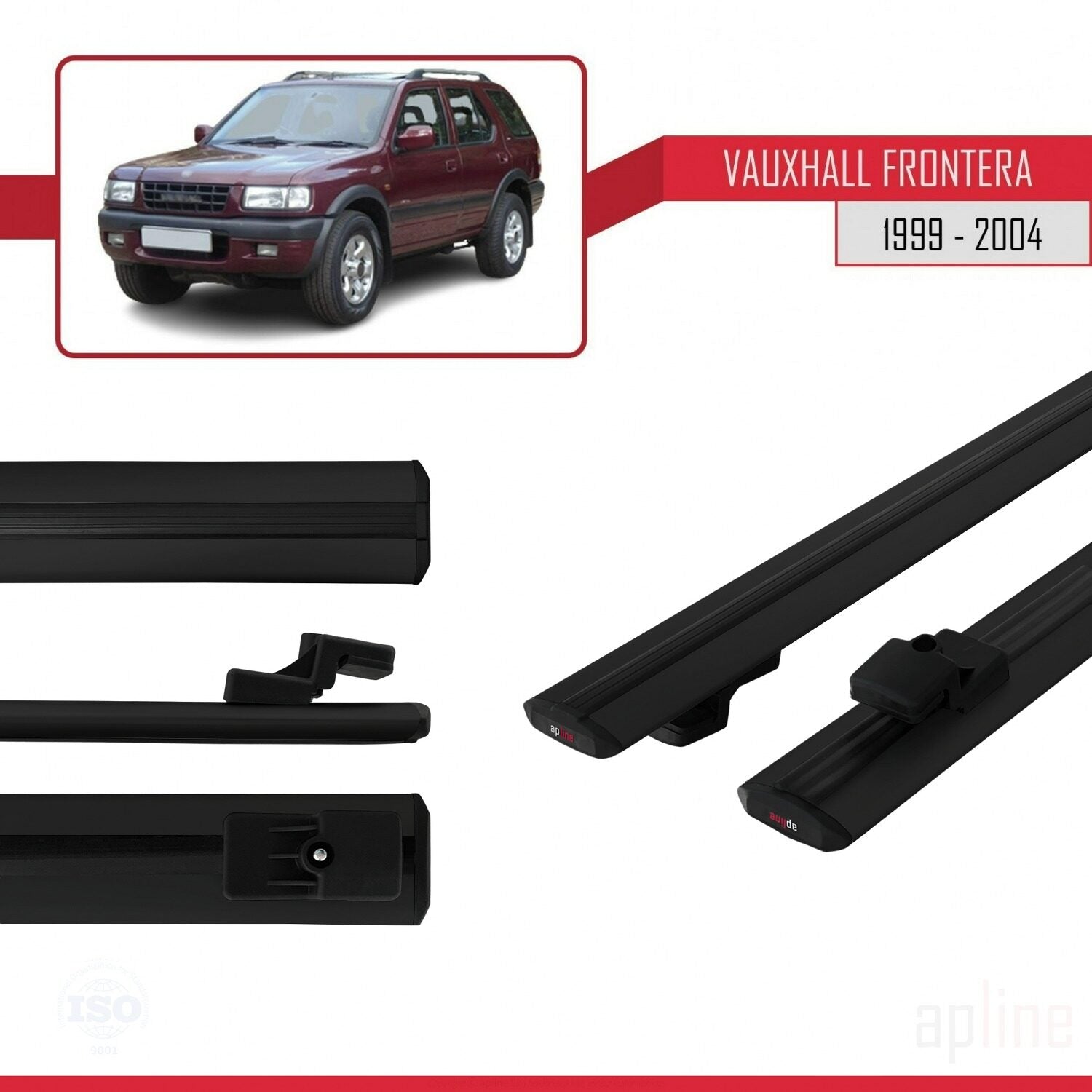Compatible avec Vauxhall Frontera 2 1999-2004 BASIC Model Barres de Toit Railing Porte-Bagages de Voiture Noir Aluminium 2 Barres