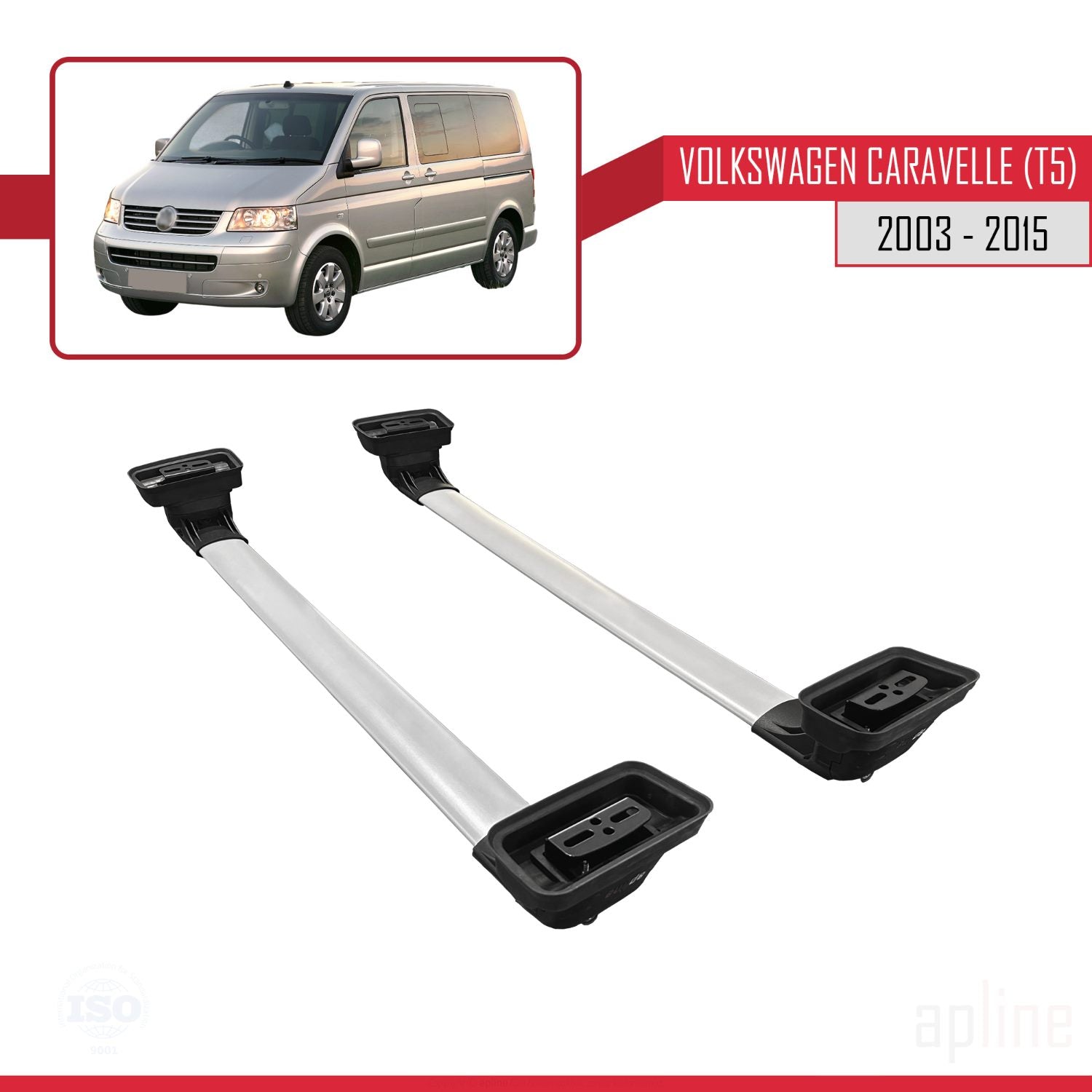 Compatible avec Volkswagen Caravelle (T5) 2003-2015 ACE-3 Barres de Toit Railing Porte-Bagages de Voiture Gris Aluminium 2 Barres