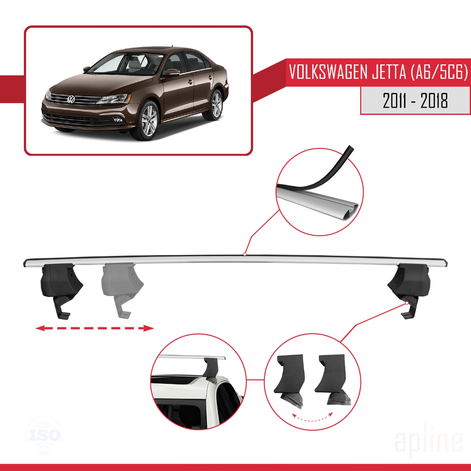 Compatible avec Volkswagen Jetta 6 (5C6) 2011-2018 ACE-4 Barres de Toit Railing Porte-Bagages de Voiture Gris Aluminium 2 Barres